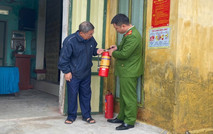 Công an xã Thần Khê kiểm tra công tác PCCC tại điểm bầu cử thôn Duyên Trường