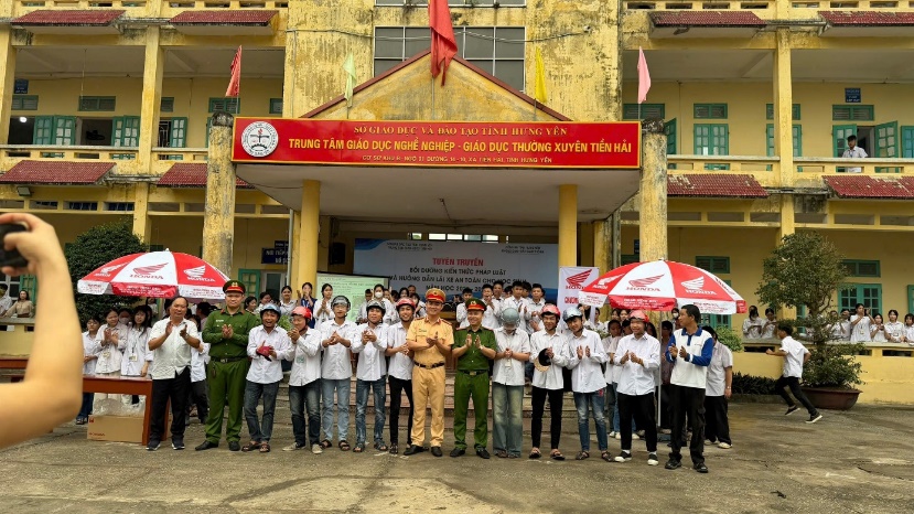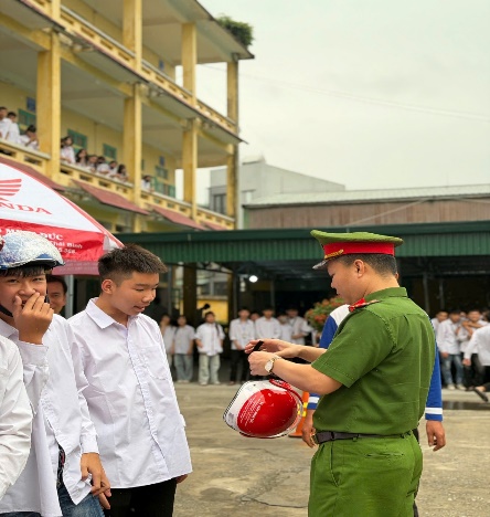 Ngày 17/04/2026, Công an xã Tiền Hải đã chủ trì, phối hợp với lực lượng Cảnh sát giao thông và các đơn vị liên quan tổ chức chương trình tuyên truyền an toàn giao thông, hướng dẫn kỹ năng lái xe an toàn và trao tặng mũ bảo hiểm cho học sinh tại trường Trung tâm GDNN-GDTX, trường THPT Hoàng Văn Thái xã Tiền Hải.