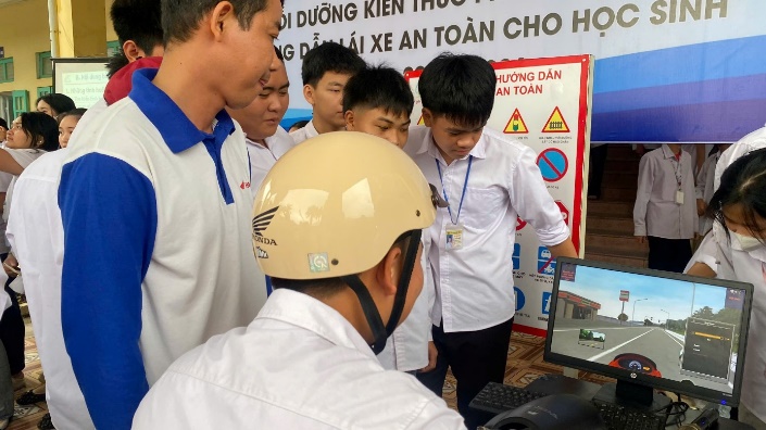 Bên cạnh nội dung tuyên truyền lý thuyết, chương trình còn tổ chức phần thực hành. Đại diện đơn vị phối hợp đã trực tiếp hướng dẫn các em học sinh những kiến thức cơ bản về điều khiển phương tiện an toàn, tư thế lái xe đúng cách, kỹ năng phanh xe, xử lý khi gặp chướng ngại vật hoặc các tình huống bất ngờ trên đường. Các nội dung hướng dẫn được truyền đạt một cách dễ hiểu, gần gũi, giúp học sinh dễ tiếp thu và ghi nhớ để áp dụng trong thực tế. Đồng thời, lực lượng Công an xã lồng ghép tuyên truyền về trách nhiệm của gia đình, nhà trường trong việc quản lý, giáo dục con em chấp hành nghiêm các quy định của pháp luật về giao thông. Nhân dịp này, ban Tổ chức đã trao tặng 20 mũ bảo hiểm đạt chuẩn cho các em học sinh góp phần hình thành thói quen đội mũ bảo hiểm khi tham gia giao thông.