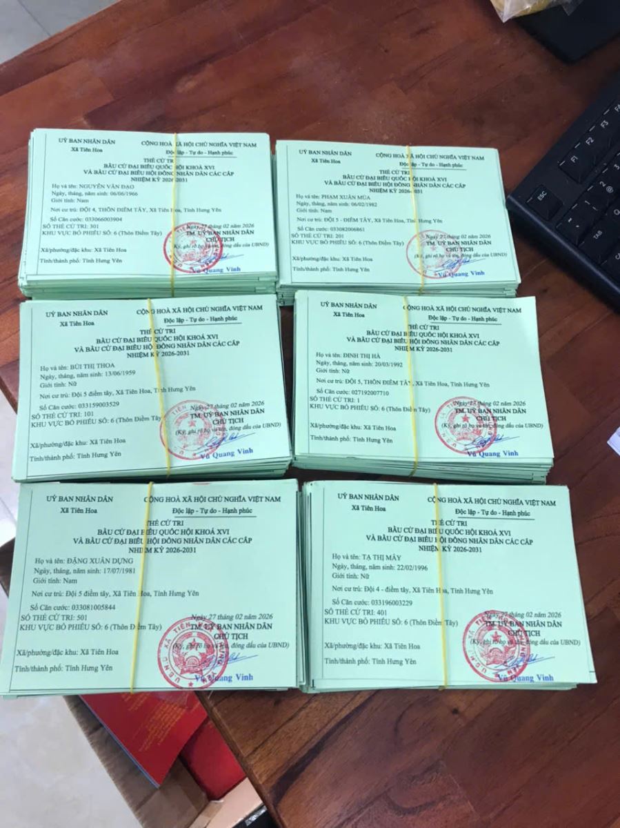 Đến ngày 28/02/2026, Công an xã Tiên Hoa đã hoàn thành việc in và bàn giao 18.491 thẻ cử tri cho Ủy ban bầu cử xã, bảo đảm tiến độ đề ra. Kết quả trên thể hiện tinh thần trách nhiệm, sự tận tụy và quyết tâm chính trị cao của lực lượng Công an xã trong việc góp phần bảo đảm thành công cuộc bầu cử, giữ vững an ninh, trật tự ngay từ cơ sở.