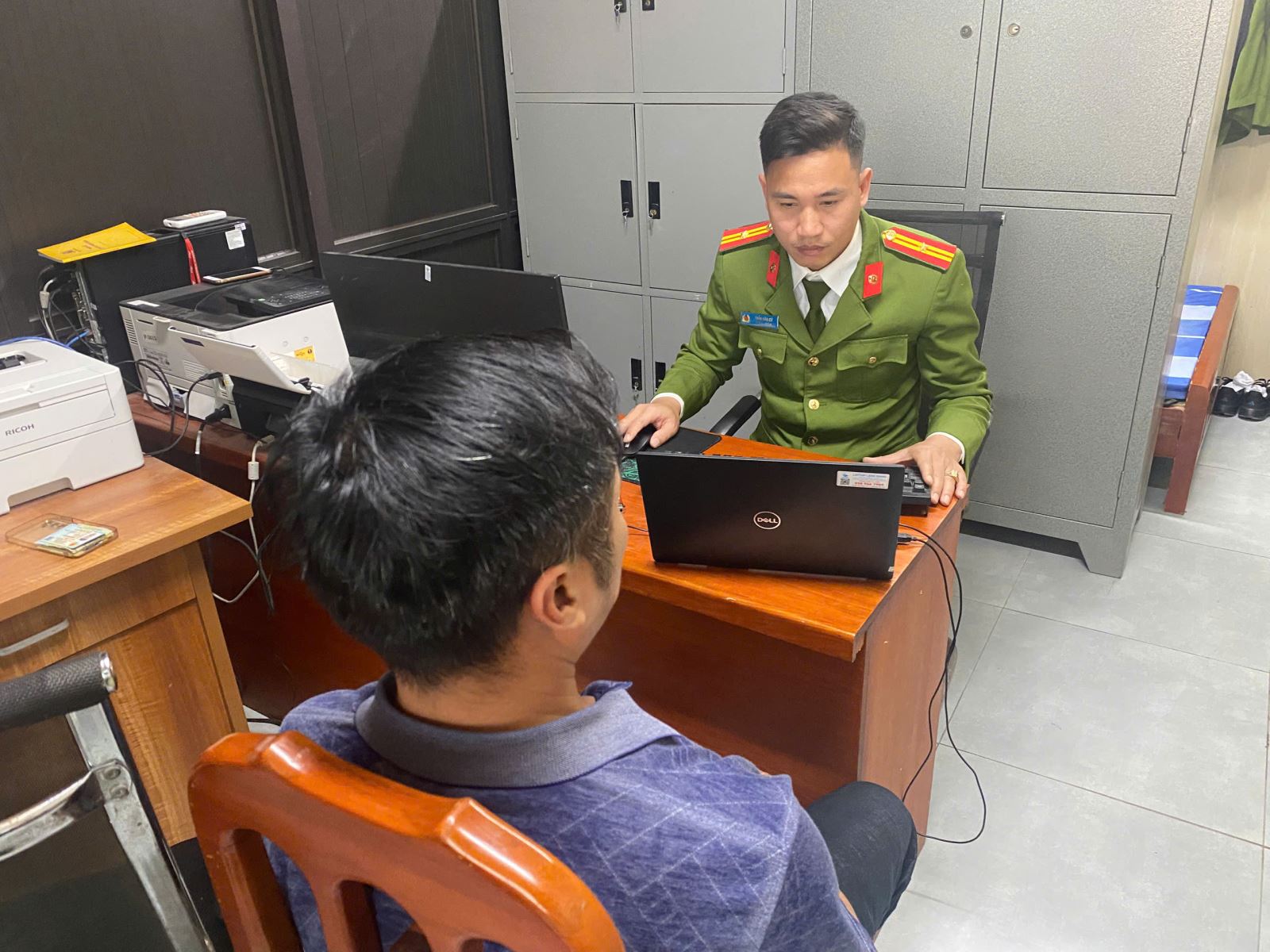 Cán bộ Công an xã Tiên Hưng làm việc với công dân chia sẻ thông tin sai sự thật trên mạng xã hội