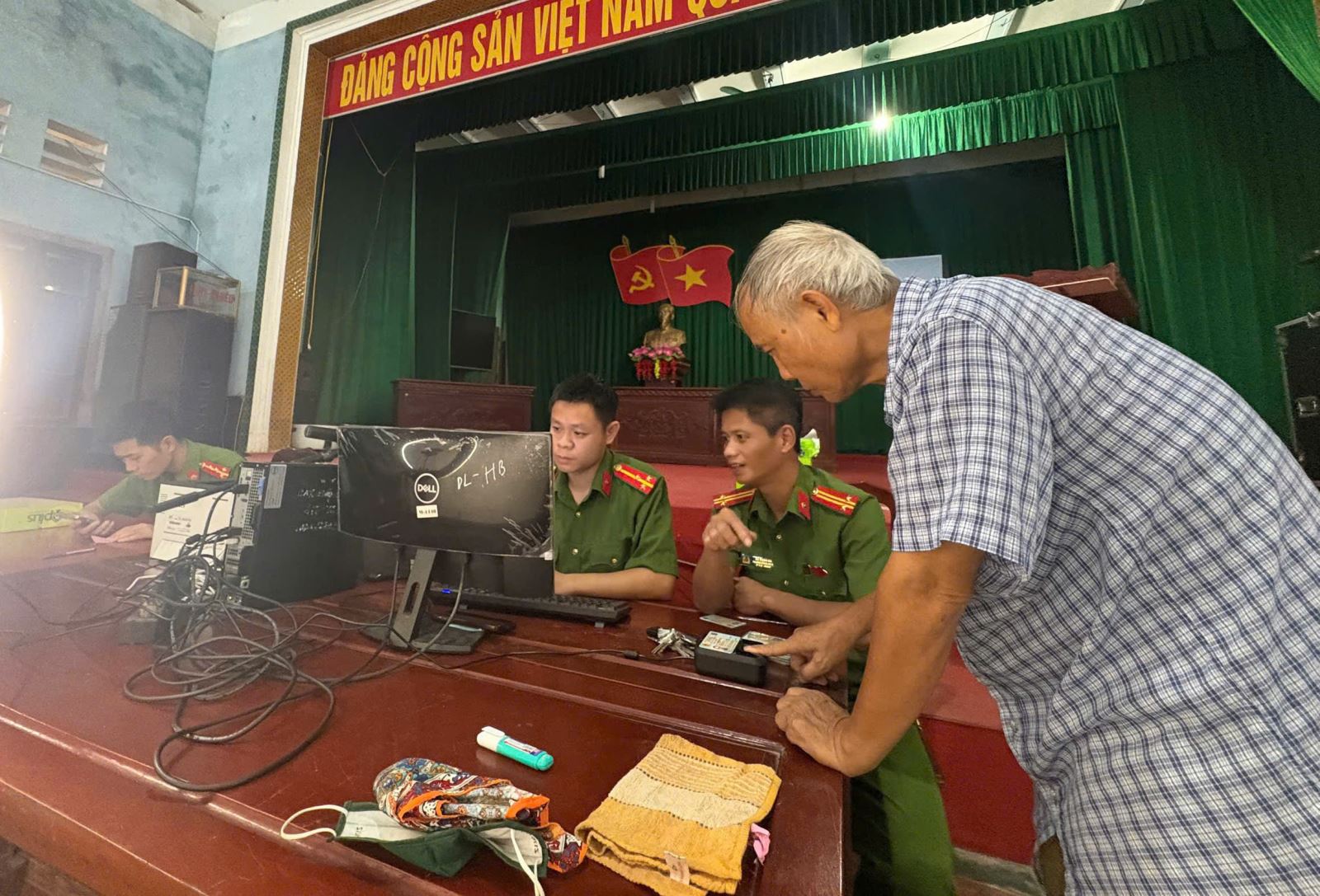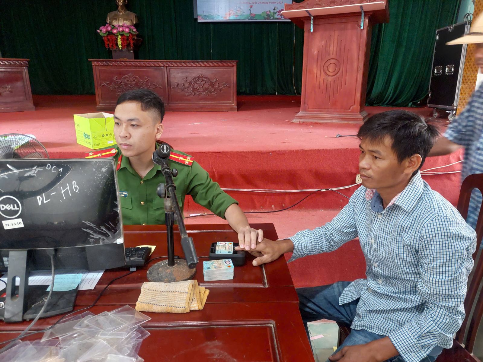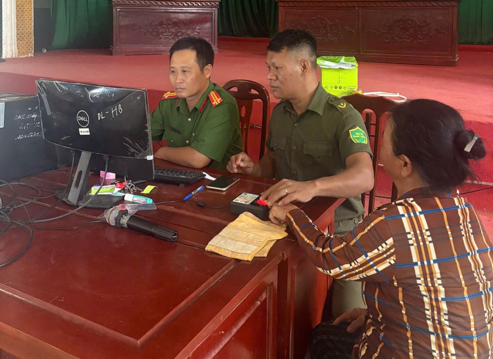 Đồng chí Trung tá Hà Mạnh Hà – Trưởng công an xã kiểm tra và hỗ trợ công dân thu nhận hồ sơ định danh điện tử mức độ 2.