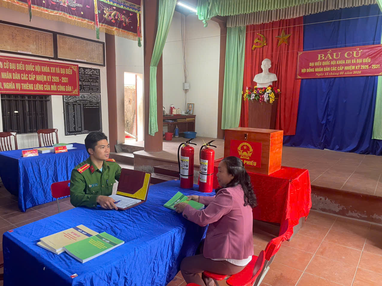 Lực lượng Công an xã đã tiến hành rà soát, kiểm tra hệ thống điện, khu vực bố trí hòm phiếu, lối thoát nạn và các điều kiện bảo đảm an toàn PCCC tại các điểm bầu cử. Đồng thời, tổ chức trang bị bổ sung các phương tiện chữa cháy ban đầu như bình chữa cháy xách tay, xô, chậu, nước và các dụng cụ phục vụ công tác chữa cháy khi có sự cố xảy ra.