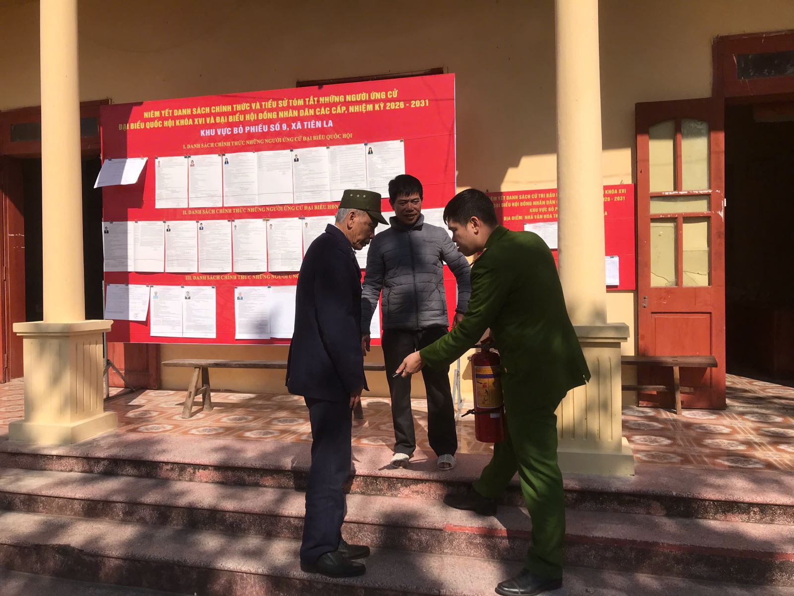 Thực hiện kế hoạch bảo đảm an ninh, an toàn phục vụ bầu cử đại biểu Quốc hội khóa XVI và đại biểu Hội đồng nhân dân các cấp nhiệm kỳ 2026–2031, Công an xã Tiên La đã chủ động triển khai các biện pháp kiểm tra, hướng dẫn công tác phòng cháy, chữa cháy (PCCC) tại 27 địa điểm tổ chức bỏ phiếu trên địa bàn xã.