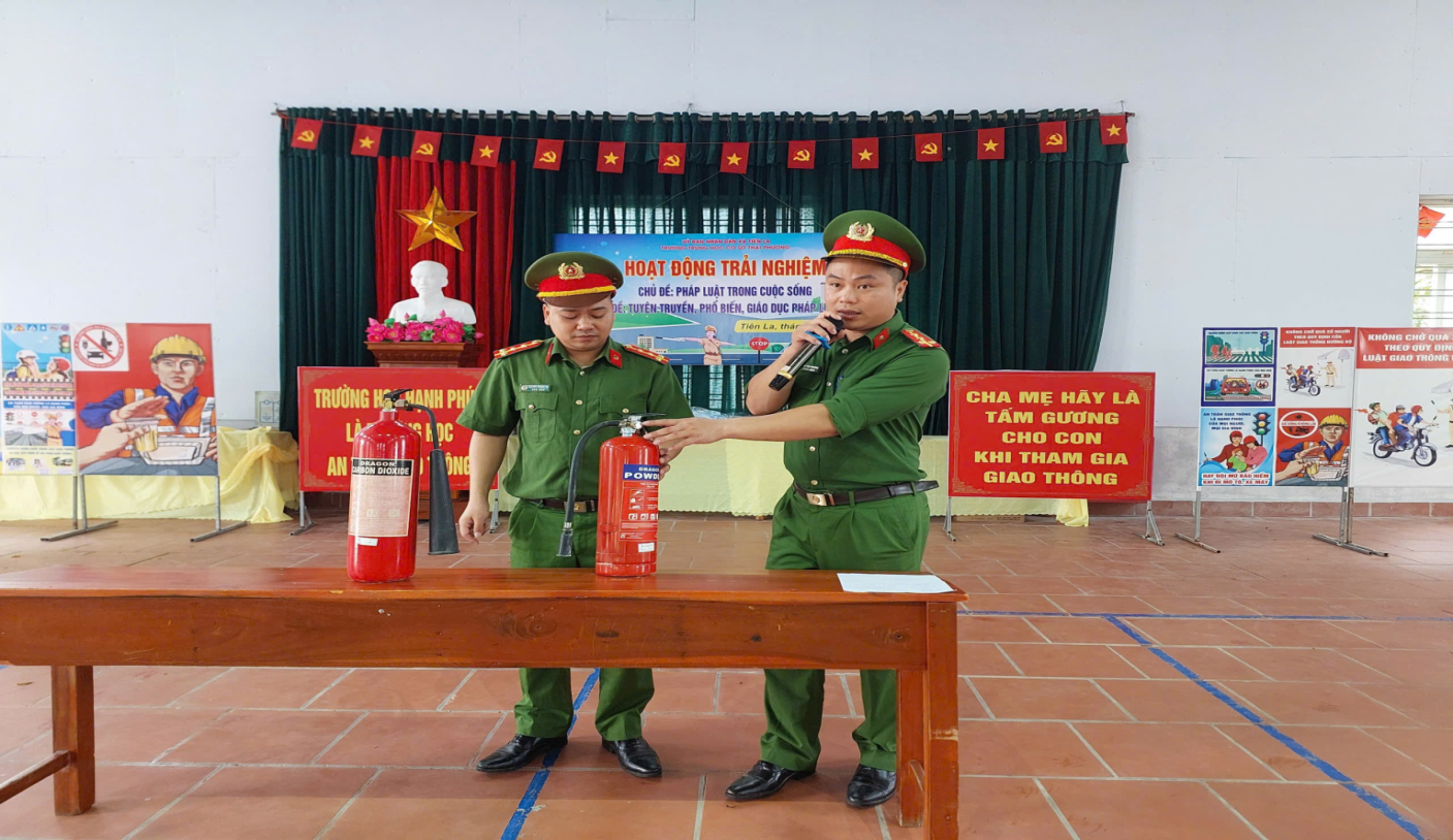 Ngày 02/10/2025, Công an xã Tiên La tổ chức tuyên truyền kiến thức pháp luật và hướng dẫn kỹ năng xử lý tình huống cháy cho cán bộ, giáo viên và học sinh trường Tiểu học và THCS Tân Tiến; Trường THCS Thái Phương, xã Tiên La; cán bộ, công nhân công ty TNHH công nghệ thực phẩm Hoa Sen.