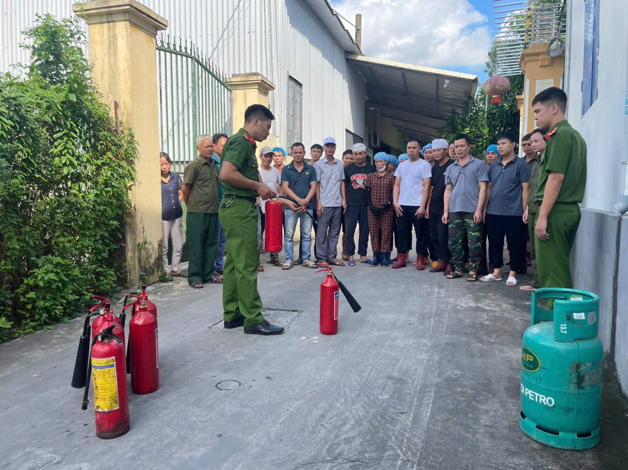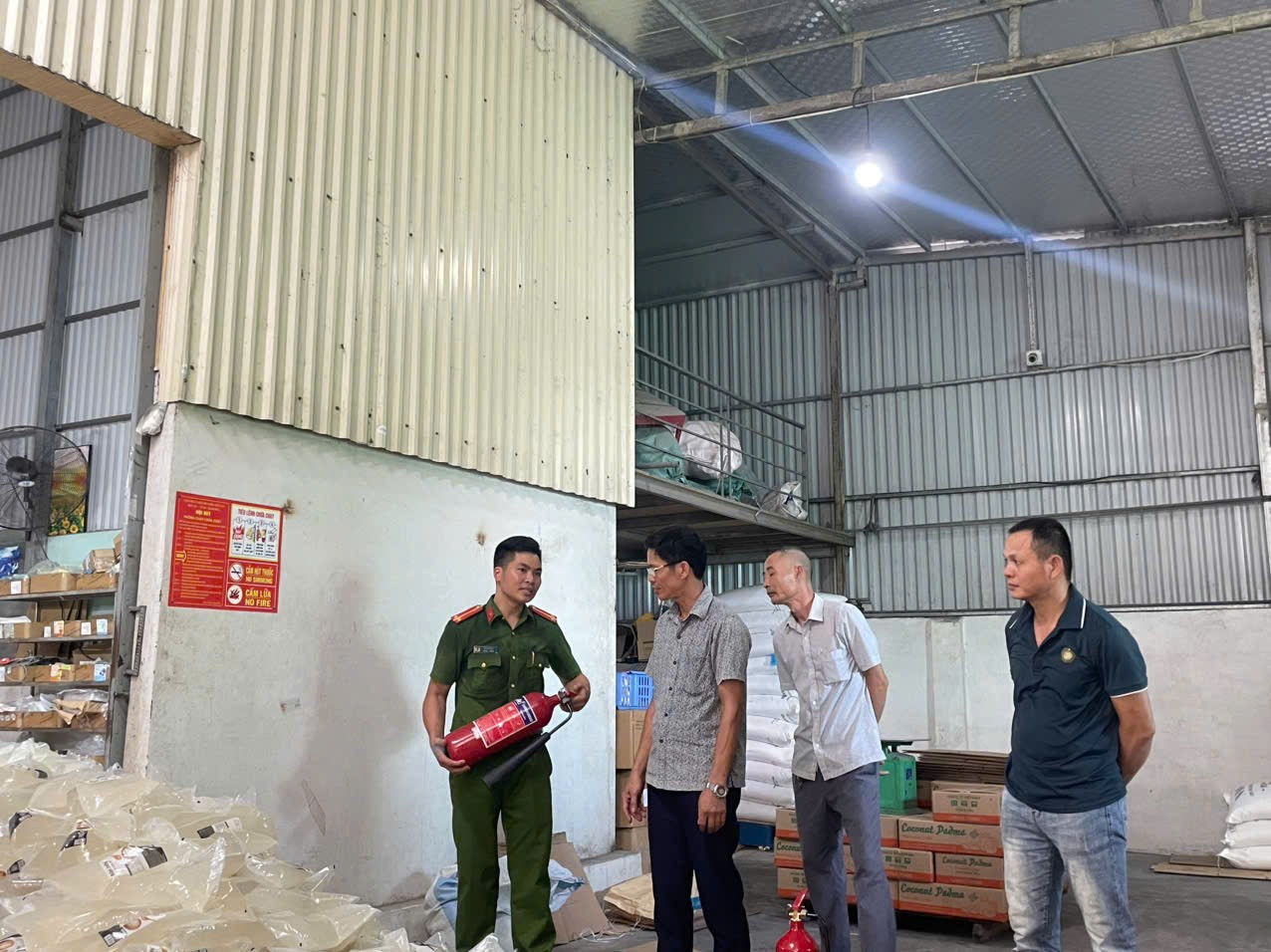 Công an xã Tiên La tuyên truyền, hướng dẫn công tác PCCC và CNCH tại Công ty TNHH Công nghệ thực phẩm Hoa Sen.