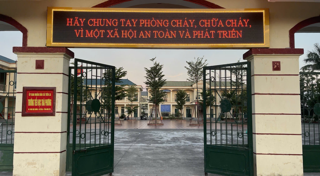 Trường Tiểu học Thái Phương, xã Tiên La treo băng rôn khẩu hiệu hưởng ứng ngày Toàn dân phòng cháy và chữa cháy.