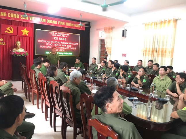 Tại buổi triển khai phương án, chỉ huy Công an xã đã quán triệt các nội dung trọng tâm của kế hoạch đảm bảo ANTT lễ hội Tiên La năm 2026, phân công nhiệm vụ cụ thể cho từng lực lượng tham gia, bao gồm lực lượng Công an xã, lực lượng tham gia bảo vệ an ninh trật tự ở cơ sở. Nội dung phương án tập trung vào các nhiệm vụ trọng tâm như: nắm chắc tình hình, chủ động phòng ngừa, phát hiện, đấu tranh với các loại tội phạm và hành vi vi phạm pháp luật; tăng cường công tác tuần tra, kiểm soát, đảm bảo trật tự an toàn giao thông; phòng, chống cháy nổ; bảo đảm an toàn cho nhân dân và du khách tham gia lễ hội.