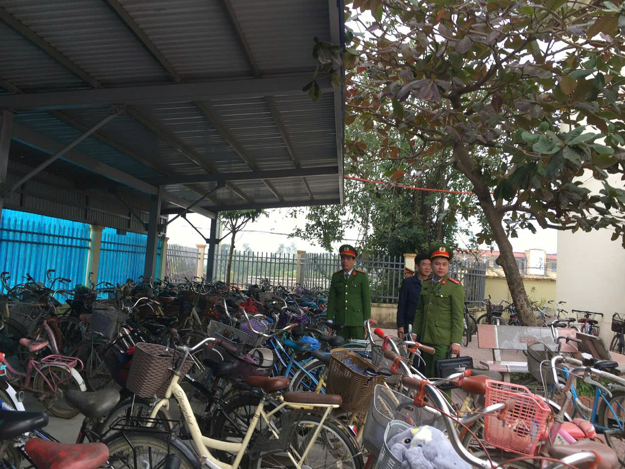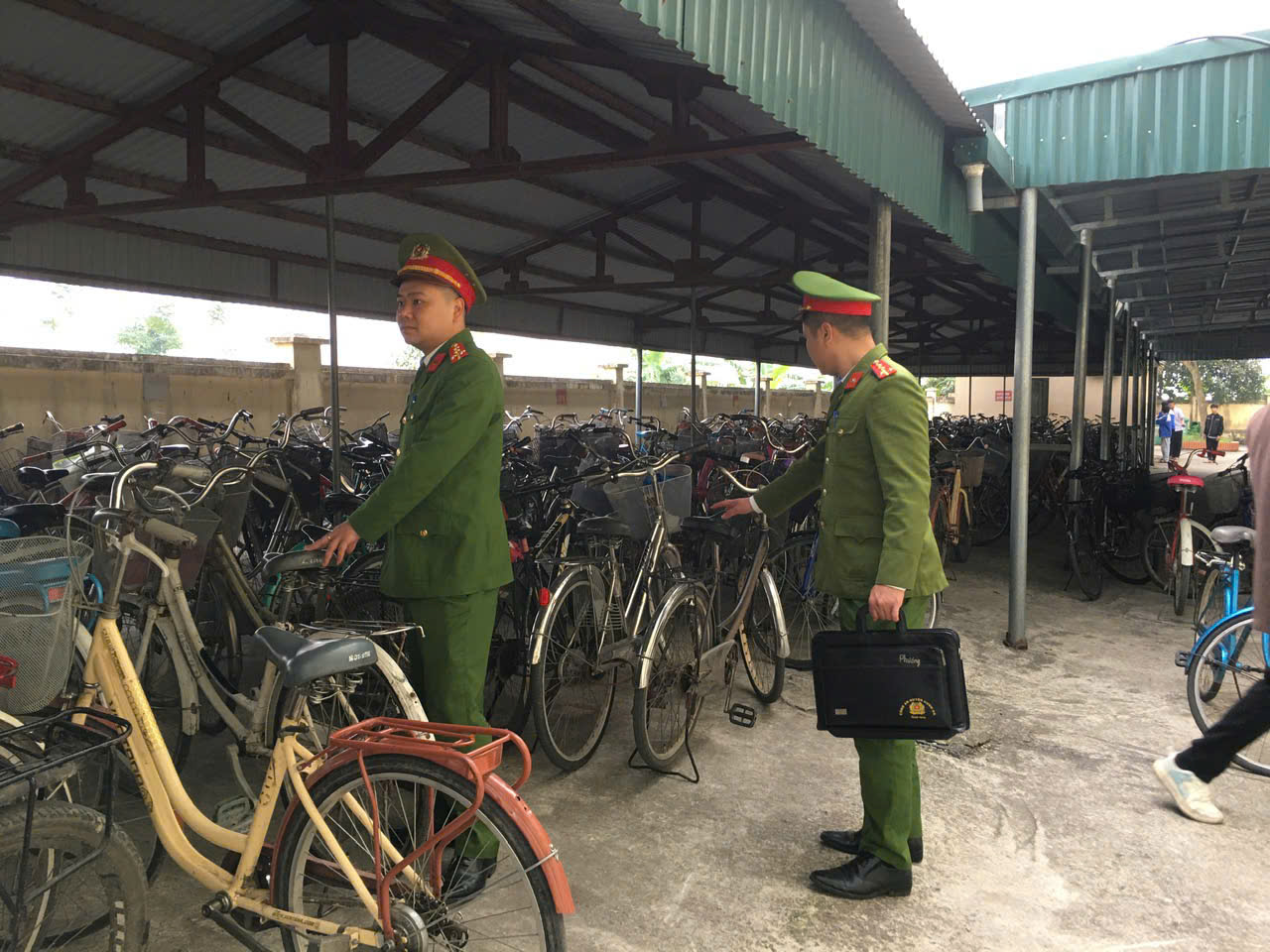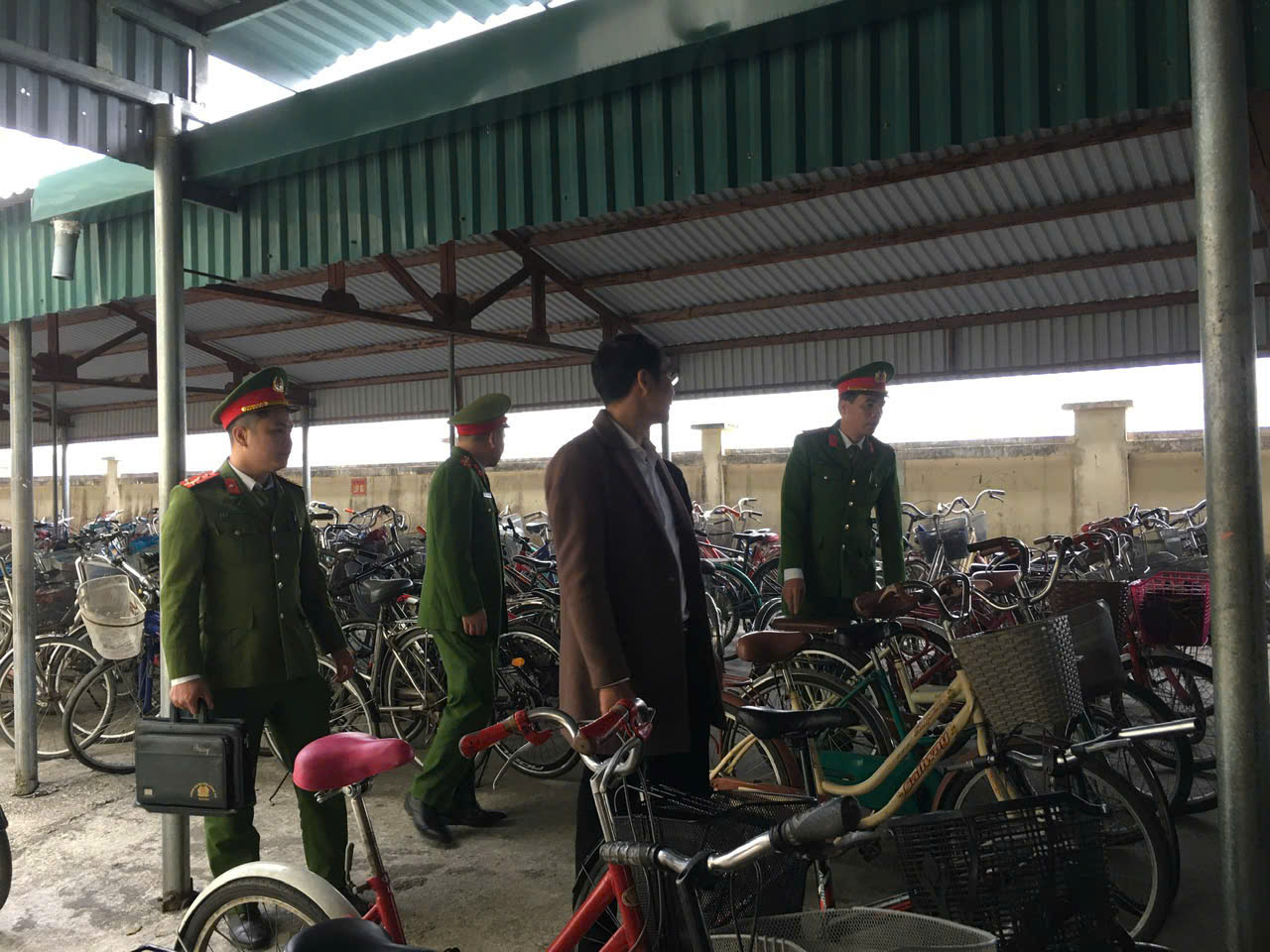 Công an xã Tiên La kiểm tra trực tiếp tại nơi trông giữ xe các trường học trên địa bàn
