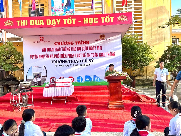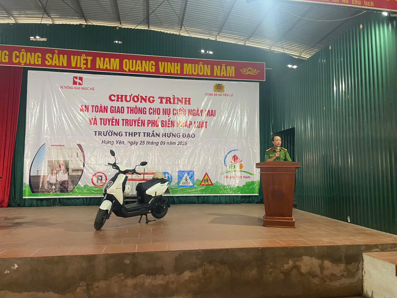 Ngày 25/09/2025, Công an xã Tiên Lữ phối hợp với Công ty Honda Ngọc Huệ và Trường Trung học phổ thông Trần Hưng Đạo tổ chức buổi tuyên truyền quy định của pháp luật về trật tự an toàn giao thông đường bộ cho cán bộ, giáo viên và học sinh nhà trường. Tham dự buổi tuyên truyền có đại diện Lãnh đạo Công an xã, chỉ huy, cán bộ tổ Cảnh sát trật tự, Ban giám hiệu nhà trường, cán bộ, giáo viên cùng 1.250 học sinh.