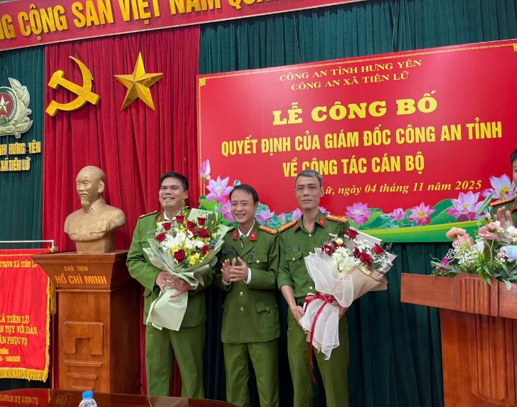 Sáng ngày 04/11/2025, tại trụ sở Công an xã Tiên Lữ, tỉnh Hưng Yên đã trang trọng tổ chức Lễ công bố Quyết định của Giám đốc Công an tỉnh về công tác cán bộ.