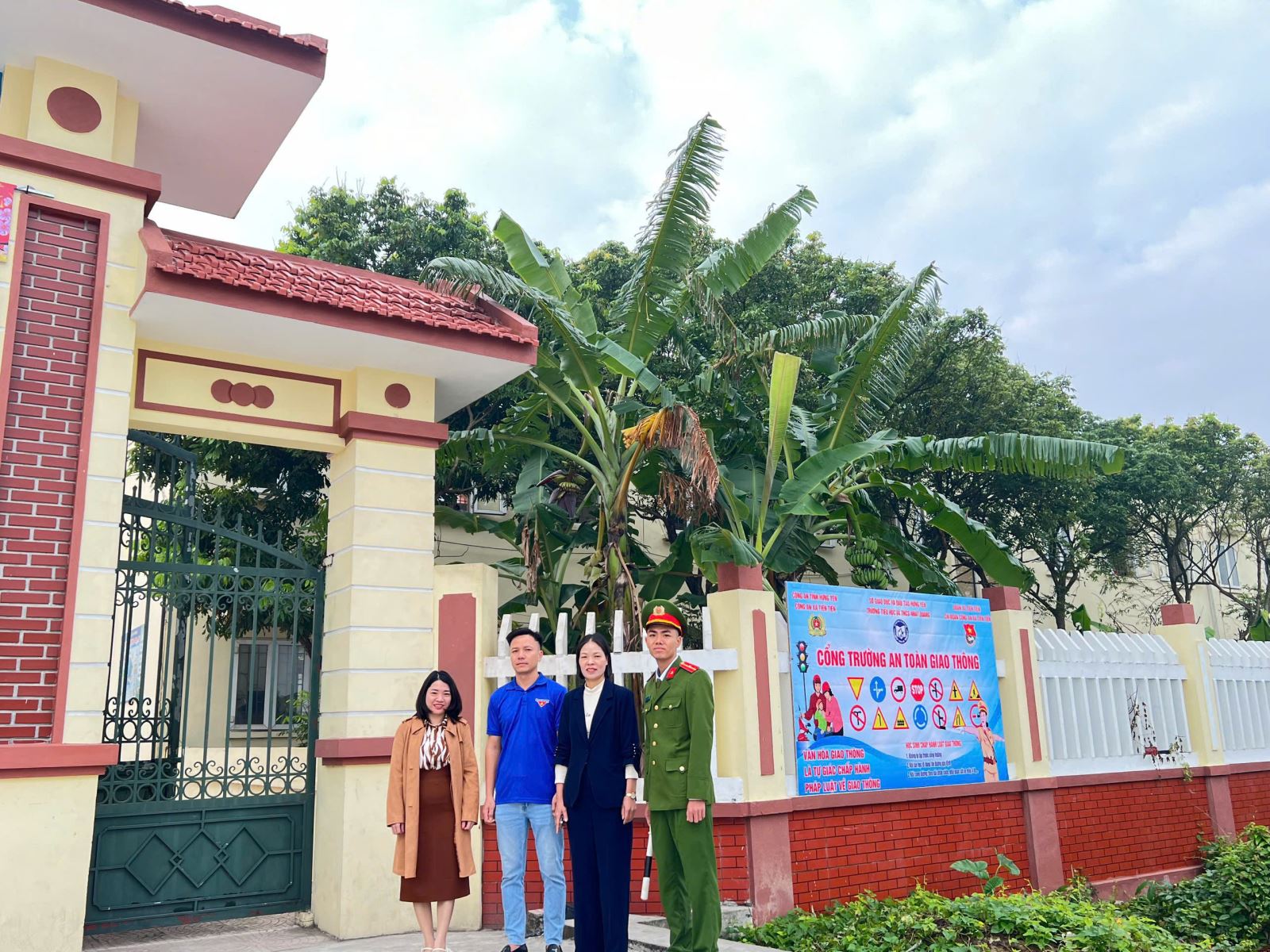Công an xã Tiên Tiến phối hợp với nhà trường và các lực lượng liên quan ra mắt, mô hình “Cổng trường an toàn giao thông”.