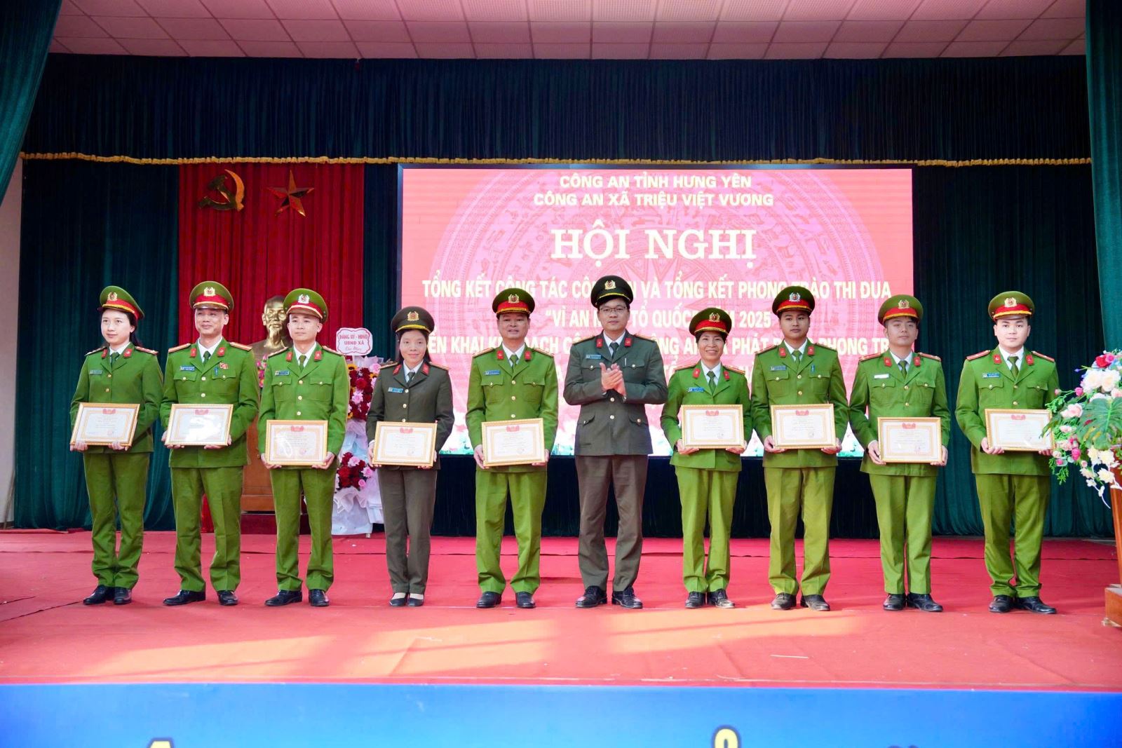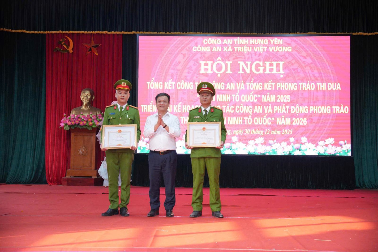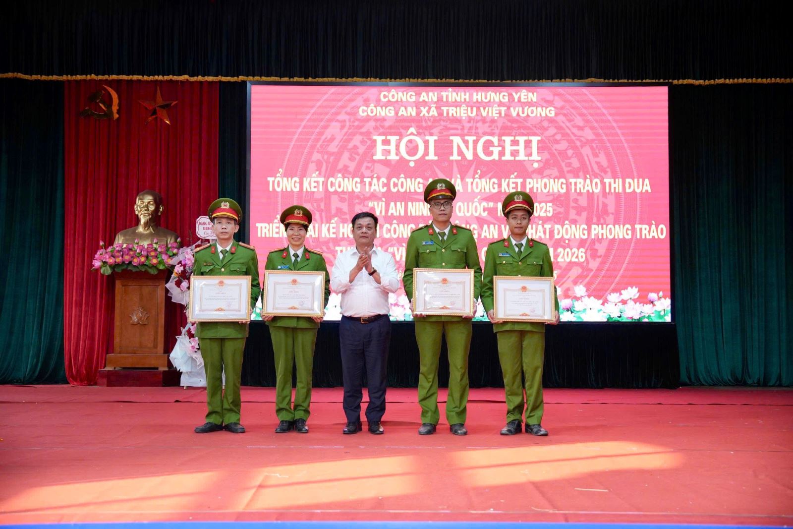 Với những kết quả nổi bật đạt được trong năm 2025, nhiều tập thể, cá nhân của Công an xã Triệu Việt Vương được Giám đốc Công an tỉnh và UBND xã biểu dương, khen thưởng.