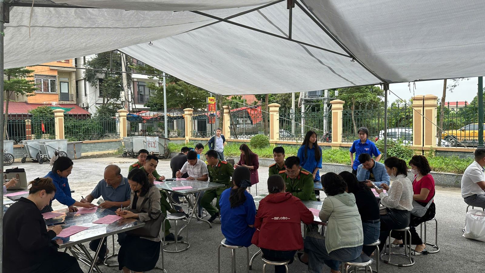 Cán bộ Công an xã đã có mặt tại điểm hiến máu từ sớm