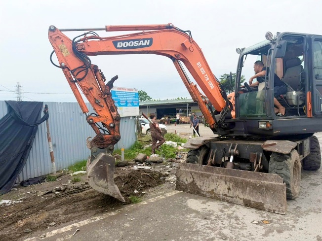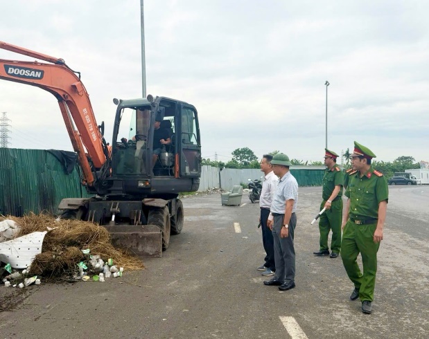 Cán bộ, chiến sĩ Công an xã Việt Tiến phối hợp đảm bảo an toàn trật tự đô thị và vệ sinh môi trường nông thôn