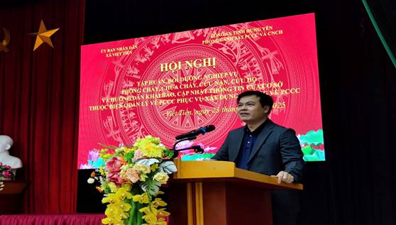 Nhằm nâng cao ý thức và kỹ năng phòng cháy, chữa cháy cho cán bộ thuộc các ban ngành, đoàn thể xã, Trưởng các thôn, thị tứ, chủ các doanh nghiệp, hộ kinh doanh thuộc diện quản lý về phòng cháy, chữa cháy trên địa bàn xã, ngày 23/10/2025, Công an xã Việt Tiến tham mưu Uỷ ban nhân dân xã Việt Tiến phối hợp với Phòng Cảnh sát Phòng cháy, chữa cháy và cứu nạn, cứu hộ (PCCC và CNCH) - Công an tỉnh Hưng Yên tổ chức Hội nghị tập huấn, bồi dưỡng nghiệp vụ PCCC và CNCH; hướng dẫn khai báo, cập nhật thông tin của cơ sở thuộc diện quản lý về PCCC phục vụ xây dựng Cơ sở dữ liệu quốc gia về PCCC tại trụ sở Uỷ ban Mặt trận Tổ quốc Việt Nam xã Việt Tiến.