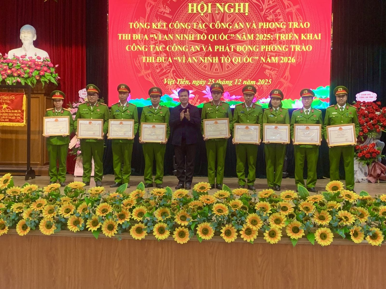 Ghi nhận những thành tích của Công an xã trong phong trào thi đua “Vì an ninh Tổ quốc” năm 2025, Công an xã Việt Tiến đã vinh dự được Bộ Công an tặng danh hiệu “Cờ thi đua của Bộ Công an”; 14 cá nhân được Giám đốc Công an tỉnh tặng danh hiệu “Chiến sĩ thi đua cơ sở” và 35 lượt tập thể, cá nhân được các cấp khen thưởng. Tại Hội nghị, 24 lượt cá nhân có thành tích xuất sắc trong thực hiện các mặt công tác đã vinh dự được đồng chí Phó Giám đốc Công an tỉnh và đồng chí Chủ tịch UBND xã trao tặng khen thưởng.