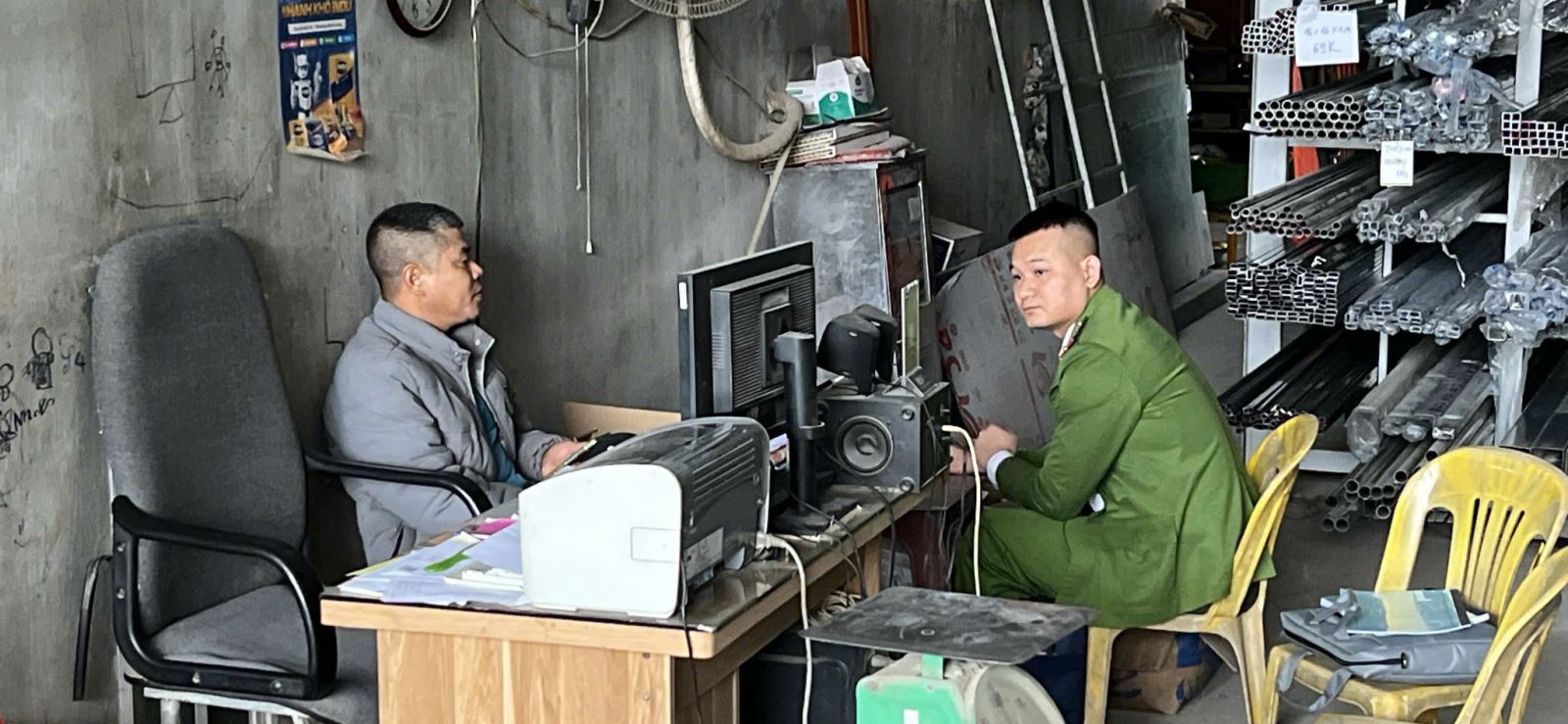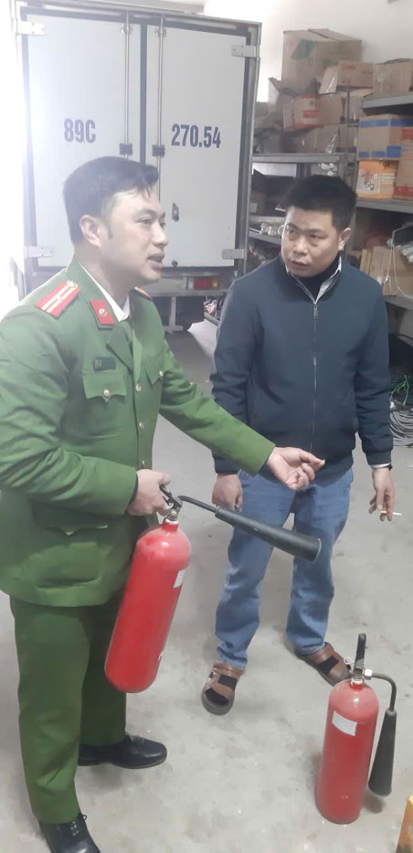 Công an xã kiểm tra, tuyên truyền, nhắc nhở chủ cơ sở kinh doanh về công tác PCCC