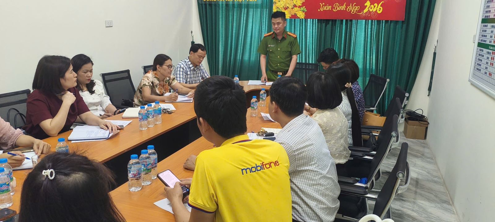 Chiều ngày 10/4/2026, Công an xã Việt Yên tổ chức cuộc họp triển khai các nội dung phối hợp thực hiện cao điểm cấp căn cước và tài khoản định danh điện tử mức 2 cho công dân là học sinh từ 6 đến dưới 14 tuổi trên địa bàn. Cuộc họp có sự tham gia của đại diện các trường học từ cấp Tiểu học đến THPT, cùng đại diện các nhà mạng viễn thông như Viettel, Mobifone… nhằm thống nhất phương án triển khai đồng bộ, bảo đảm tiến độ và hiệu quả theo chỉ đạo của Công an tỉnh Hưng Yên. Đồng chí Thiếu tá Đoàn Ánh Sáng – Phó Trưởng Công an xã Việt Yên, chủ trì cuộc họp.