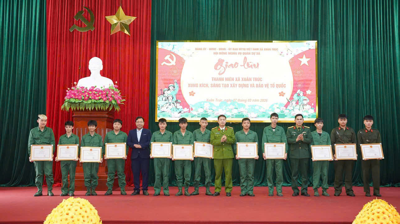 Ngày 27/2/2026, tại Nhà văn hóa xã Xuân Trúc, Đảng ủy – HĐND – UBND – Hội đồng Nghĩa vụ quân sự xã tổ chức chương trình giao lưu tân binh chủ đề “Thanh niên xã Xuân Trúc xung kích, sáng tạo xây dựng và bảo vệ Tổ quốc”.