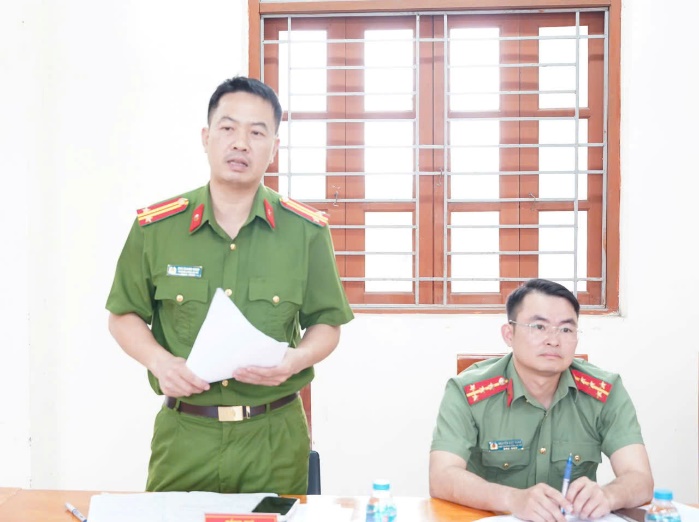 Đồng chí Trung tá Chu Quang Hanh – Trưởng Công an xã phát biểu tại Hội nghị