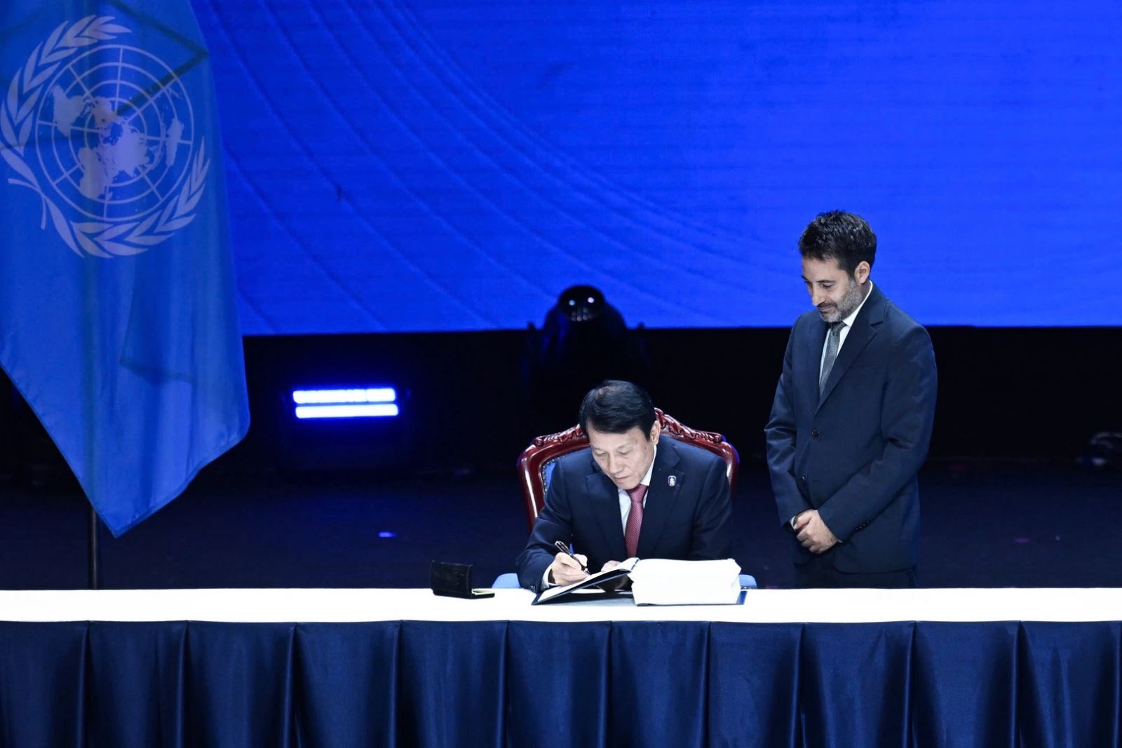 Chủ tịch nước Lương Cường kêu gọi các quốc gia thành viên sớm phê chuẩn Công ước, để văn kiện này sớm có hiệu lực, thiết lập vững chắc một trật tự số công bằng, bao trùm và dựa trên luật lệ.