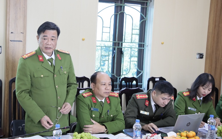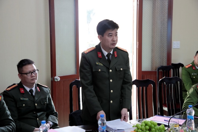 Đồng chí Đại tá Vũ Mạnh Hà, Phó Giám đốc Công an tỉnhphát biểu chỉ đạo tại Hội nghị