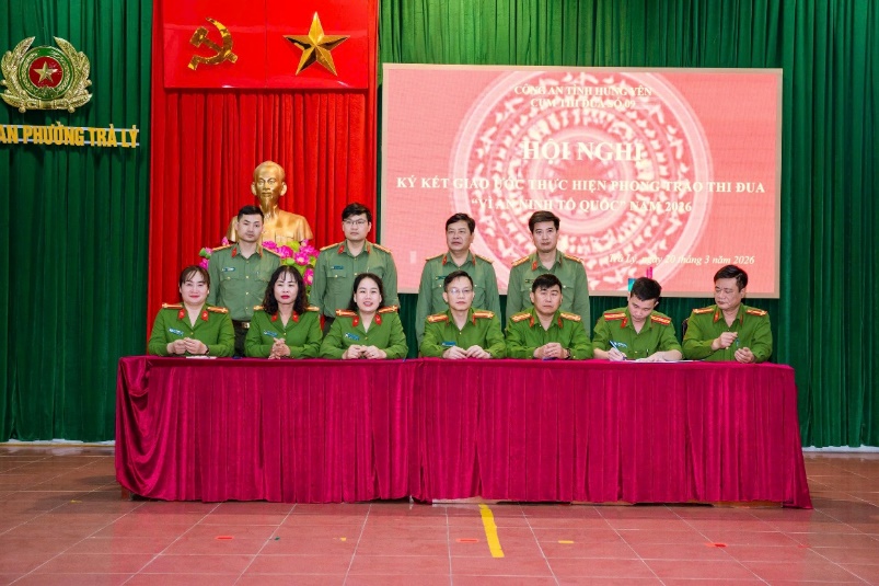 Thực hiện phong trào thi đua “Vì an ninh Tổ quốc” năm 2026 trong Công an tỉnh Hưng Yên, chiều ngày 20/3/2026 tại Công an phường Trà Lý, cụm thi đua số gồm 07 đơn vị: Công an phường Trà Lý, Công an phường Trần Lãm, Công an phường Vũ Phúc, Công an phường Thái Bình, Công an phường Trần Hưng Đạo, Công an xã Đông Quan, Công an xã Nam Đông Hưng đã tổ chức Hội nghị ký giao ước thi đua, triển khai công tác thi đua khen thưởng và phát động phong trào thi đua “Ba nhất”.