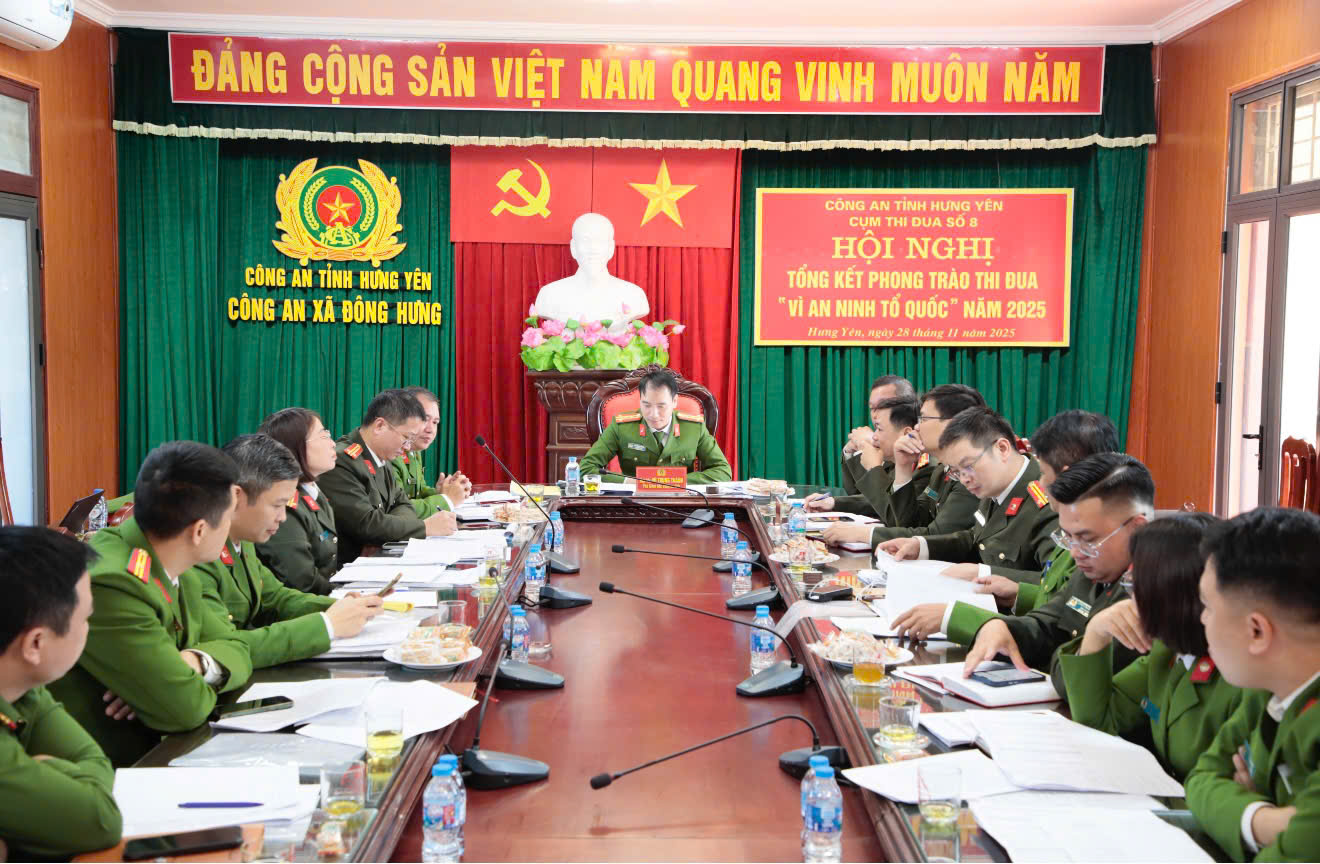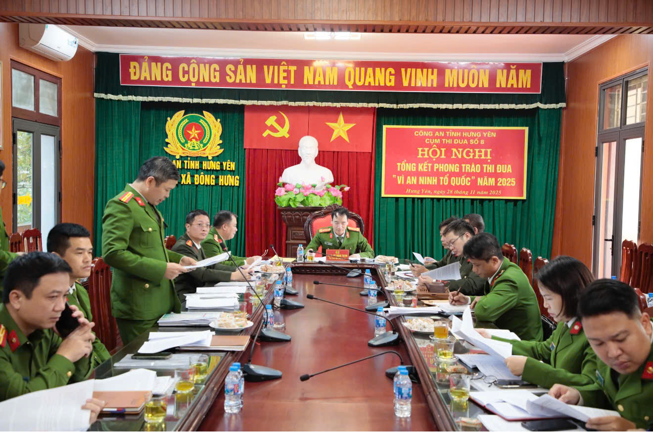 Tại hội nghị, Thiếu tá Vũ Duy Mạnh, Phó Trưởng Công an xã thay mặt đơn vị Cụm trưởng đã trình bày dự thảo báo cáo tổng kết phong trào thi đua "Vì an ninh Tổ quốc" năm 2025 và triển khai một số nhiệm vụ công tác trọng tâm năm 2026. Theo đó, bám sát chủ trương, chỉ đạo của Công an tỉnh, ngay sau khi thực hiện việc sáp nhập chính quyền địa phương 02 cấp, Cụm thi đua số 8 đã xây dựng kế hoạch triển khai và tổ chức phát động phong trào thi đua "Vì an ninh Tổ quốc" năm 2025 với khẩu hiệu hành động: "Gương mẫu đi đầu, tăng tốc bứt phá thực hiện các chủ trương của Đảng, pháp luật của Nhà nước; Xây dựng Công an Hưng Yên thật sự trong sạch, vững mạnh, chính quy, tinh nhuệ, hiện đại" theo phương châm 3 Nhất “Nhanh nhất, Cao nhất, Hiệu quả nhất” với tinh thần “Nỗ lực không ngừng, Đổi mới sáng tạo, Vượt qua chính mình, Lập công xuất sắc”. Cụm thi đua đã tổ chức phát động 04 đợt thi đua, trong đó tập trung vào đợt cao điểm tấn công, trấn áp tội phạm đảm bảo ANTT những tháng cuối năm 2024 và Tết Nguyên đán Ất Tỵ năm 2025; Phong trào thi đua đặc biệt chào mừng kỷ niệm 80 năm Ngày truyền thống Công an Nhân dân Việt Nam, 20 năm Ngày hội toàn dân bảo vệ an ninh Tổ quốc; Hưởng ứng các phong trào thi đua đổi mới sáng tạo và chuyển đổi số; phong trào thi đua chung tay xoá nhà tạm, nhà dột nát trên phạm vi cả nước năm 2025; phong trào “Cán bộ, công chức, viên chức thi đua thực hiện văn hoá nơi công sở”…