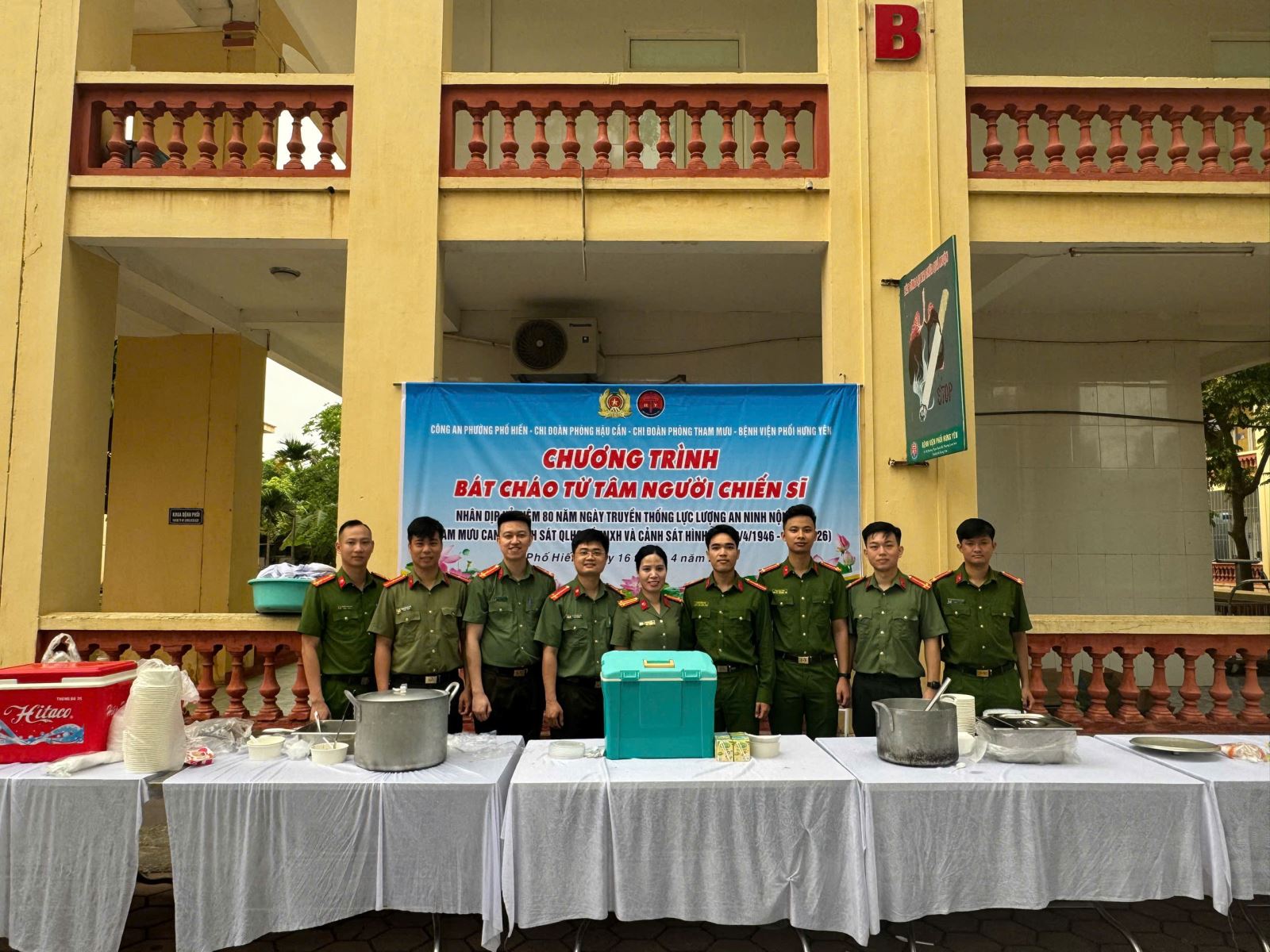 Sáng ngày 16/4/2026, Công an phường Phố Hiến đã phối hợp với Chi đoàn Phòng Hậu cần, Chi đoàn Phòng Tham mưu Công an tỉnh và Bệnh viện Phổi Hưng Yên tổ chức chương trình thiện nguyện mang ý nghĩa nhân văn sâu sắc: “Bát cháo từ tâm người chiến sĩ”.