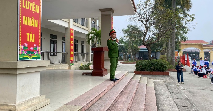 Công an xã phổ biến pháp luật về phòng, chống ma túy tại trường THCS Lê Tư Thành