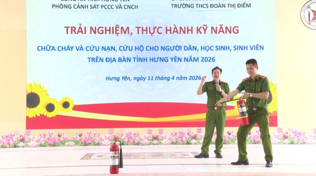 Ngày 11/4, tại Trường THCS Đoàn Thị Điểm (xã Yên Mỹ), Đội PCCC và CNCH Khu công nghiệp Thăng Long II, Phòng Cảnh sát PCCC và CNCH Công an tỉnh Hưng Yên đã tổ chức tuyên truyền, phổ biến kiến thức PCCC và CNCH cho hơn 800 cán bộ, giáo viên và học sinh. Nội dung tập trung thông tin về tình hình cháy, nổ trên cả nước và địa bàn tỉnh; phân tích nguyên nhân, nguy cơ tiềm ẩn trong môi trường học đường; đồng thời giới thiệu những điểm mới của Luật PCCC và CNCH và các văn bản hướng dẫn thi hành. Không dừng lại ở lý thuyết, lực lượng Cảnh sát PCCC và CNCH đã trực tiếp hướng dẫn kỹ năng nhận biết nguy cơ cháy, nổ; biện pháp phòng ngừa; cách xử lý khi xảy ra sự cố; kỹ năng cứu người bị nạn. Học sinh và giáo viên được tham gia thực hành sử dụng bình chữa cháy xách tay để dập tắt đám cháy gas, thực hành di chuyển, thoát nạn trong môi trường có khói, khí độc, sử dụng phao cứu hộ… Qua đó hình thành phản xạ, kỹ năng cần thiết, chủ động ứng phó trong các tình huống khẩn cấp.
