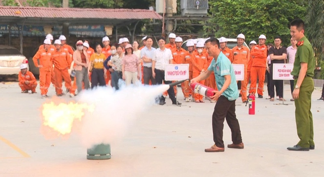 Tiếp đó, ngày 12/4, Đội PCCC và CNCH Khu công nghiệp Thăng Long II tổ chức chương trình trải nghiệm, thực hành kỹ năng chữa cháy cho hơn 80 cán bộ, nhân viên thuộc Ngân hàng Chính sách xã hội, Bảo hiểm xã hội và Đội quản lý điện khu vực Yên Mỹ. Đây là các đơn vị có yêu cầu cao về an toàn PCCC, tiềm ẩn nhiều nguy cơ cháy, nổ nếu không được kiểm soát chặt chẽ. Tại chương trình, học viên được cập nhật các quy định pháp luật mới về PCCC và CNCH; làm rõ trách nhiệm của người đứng đầu và từng cá nhân trong công tác phòng cháy. Đồng thời, được hướng dẫn xây dựng và xử lý các tình huống giả định cháy, nổ tại trụ sở làm việc; thực hành sử dụng thành thạo các phương tiện chữa cháy tại chỗ như bình bột, bình khí; kỹ năng tổ chức thoát nạn an toàn và sơ cứu người bị nạn. Thông qua các tình huống giả định sát với thực tế, lực lượng chức năng đã giúp cán bộ, nhân viên nâng cao khả năng phối hợp, xử lý nhanh, đúng quy trình ngay từ những phút đầu khi xảy ra sự cố, hạn chế thấp nhất thiệt hại về người và tài sản.