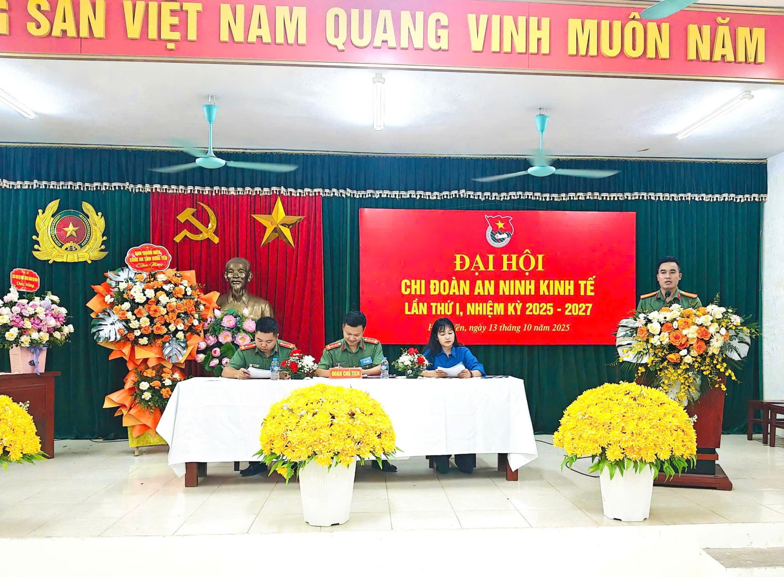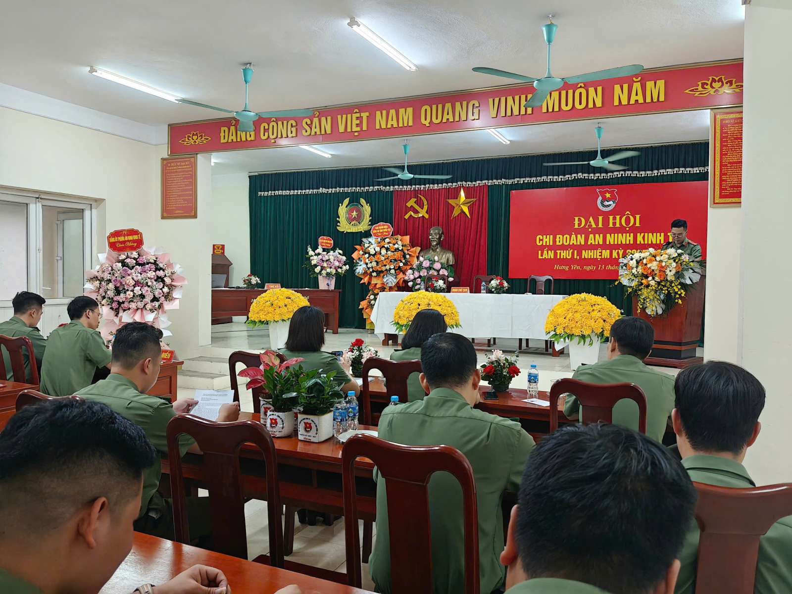 Chiều 13/10/2025, Chi đoàn Phòng An ninh kinh tế Công an tỉnh Hưng Yên tổ chức Đại hội Chi đoàn lần thứ I, nhiệm kỳ 2025 - 2027. Tới dự động viên và chỉ đạo Đại hội có các đồng chí: Thượng tá Vũ Xuân Hoạt - Phó Trưởng phòng An ninh kinh tế cùng các đồng chí trong cấp ủy, lãnh đạo đơn vị; Thiếu tá Nguyễn Duy Hưng - Trưởng Ban Thanh niên Công an tỉnh và toàn thể đoàn viên Chi đoàn.