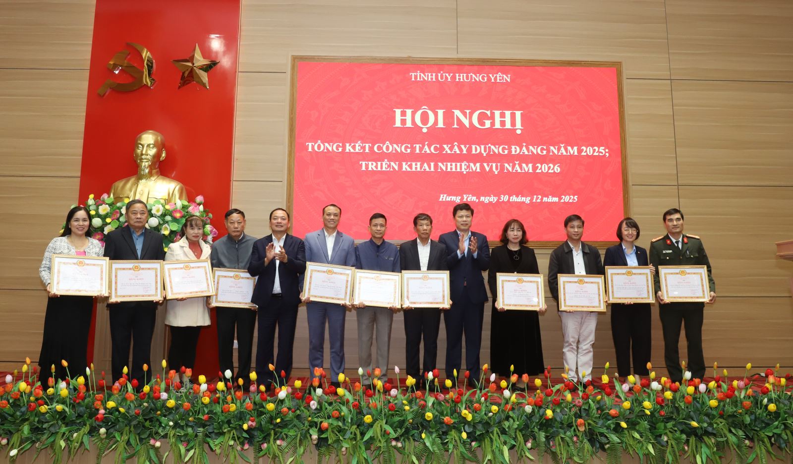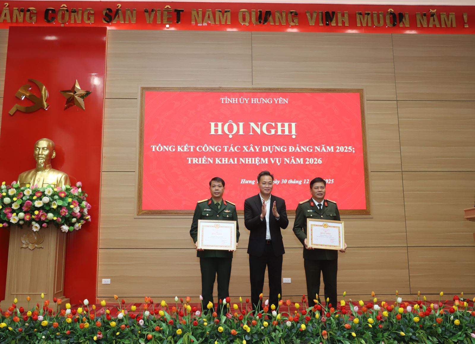 Ghi nhận những thành tích đạt được của Đảng bộ Công an tỉnh trong năm 2025, tại Hội nghị tổng kết công tác xây dựng Đảng năm 2025, triển khai nhiệm vụ năm 2026 của Tỉnh ủy tỉnh Hưng Yên, Ban Thường vụ Tỉnh ủy đã tặng Bằng khen cho Đảng bộ Công an tỉnh đạt tiêu chuẩn “Hoàn thành xuất nhiệm vụ” tiêu biểu năm 2025; tặng Bằng khen cho Đảng bộ Phòng Tổ chức cán bộ và 01 đảng viên đạt tiêu chuẩn “Hoàn thành thành xuất sắc” tiêu biểu 5 năm liền 2021 - 2025.