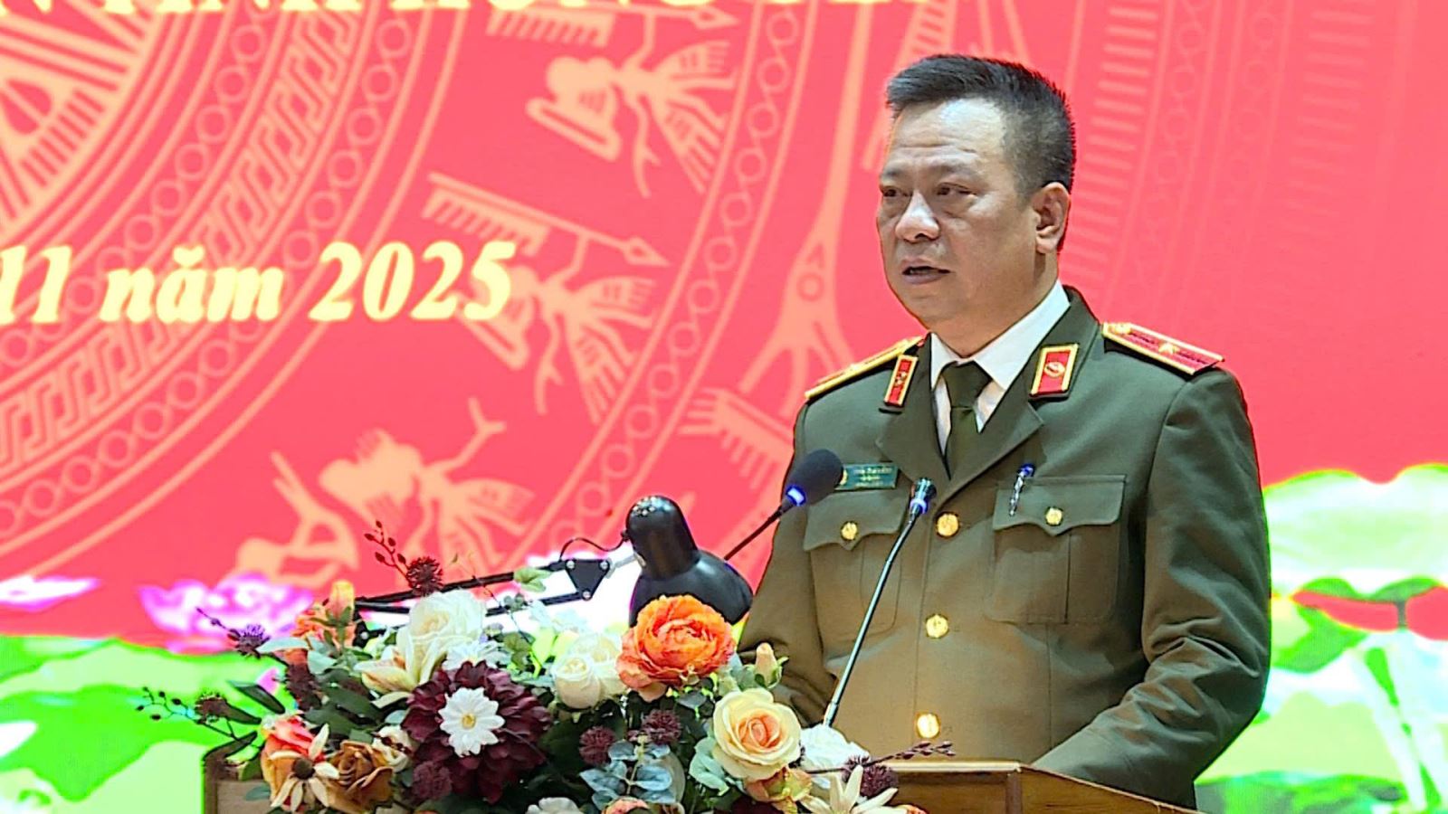 Đồng chí Thiếu tướng Trần Xuân Ánh, Ủy viên Ban Thường vụ Tỉnh ủy, Giám đốc Công an tỉnh phát biểu chỉ đạo tại Hội nghị