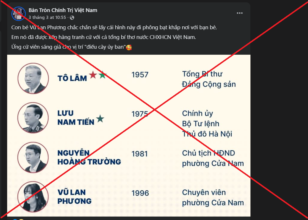 Thứ ba, thủ đoạn hoạt động của số đối tượng phản động là sử dụng ngôn ngữ mạng kết hợp với hình ảnh chế giễu để triệt tiêu tính nghiêm túc của một sự kiện chính trị trọng đại. Chúng muốn biến ngày hội bầu cử - quyền lợi thiêng liêng của công dân - thành một trò đùa “phông bạt” trong mắt giới trẻ. Bằng cách mỉa mai sự chênh lệch tuổi tác và chức vụ, chúng gieo rắc sự đố kỵ xã hội và tâm lý hoài nghi vào quy trình nhân sự của Đảng. Đây là đòn tấn công tâm lý hiểm hóc nhắm vào tầng lớp thanh niên - những người dễ bị tác động bởi các trào lưu mạng xã hội nhưng lại chưa có nhiều kinh nghiệm nhận diện các âm mưu chính trị sâu xa.