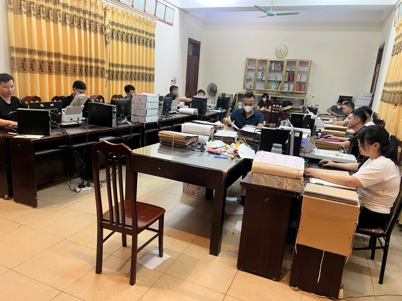 Cán bộ, chiến sĩ phòng Hồ sơ nghiệp vụ tích cực làm thêm giờ phục vụ công tác số hóa Hồ sơ nghiệp vụ lưu trữ