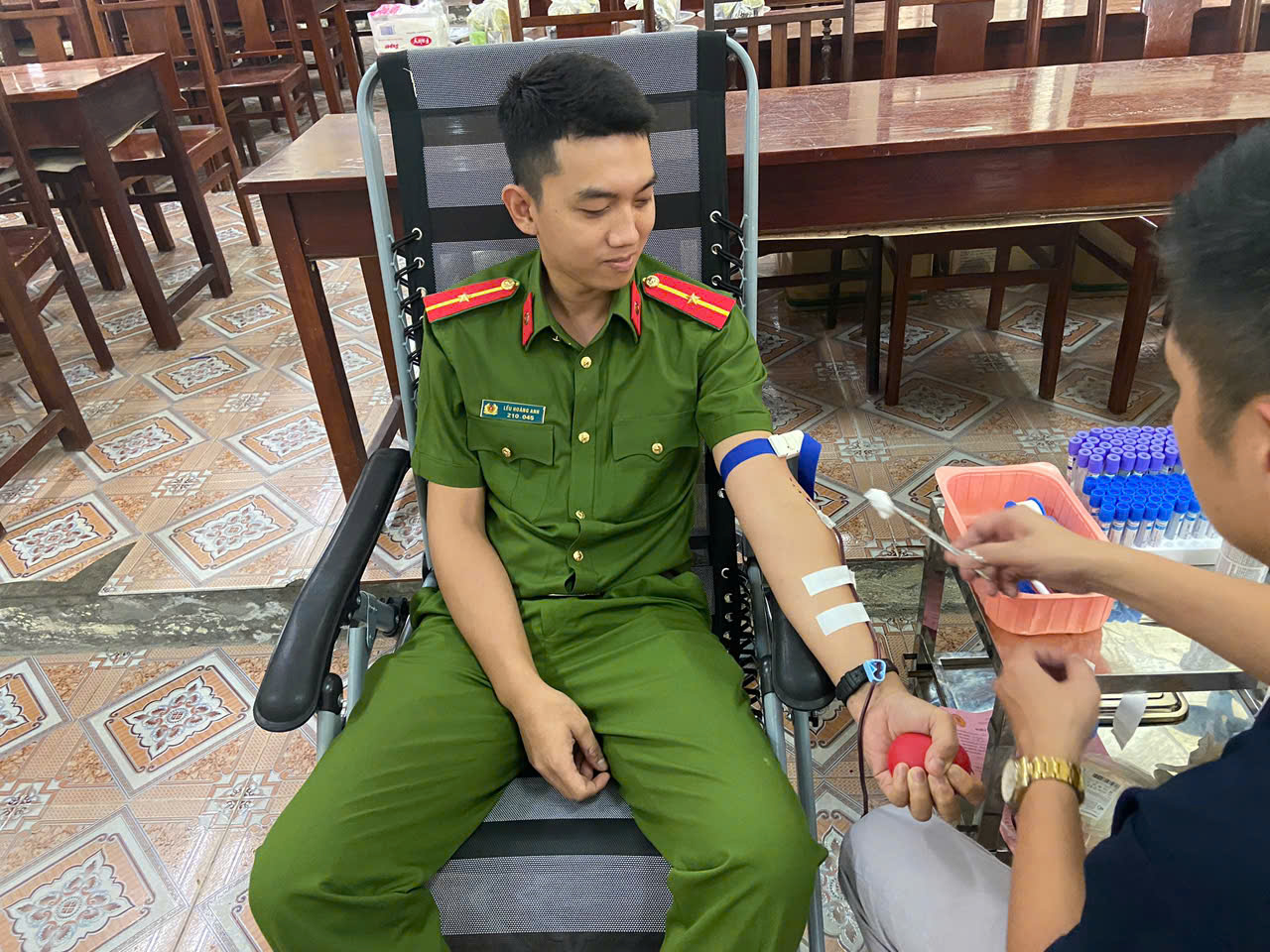 Đồng chí Lều Hoàng Anh cán bộ Đội Quản lý và sử dụng động vật nghiệp vụ tham gia hiến máu