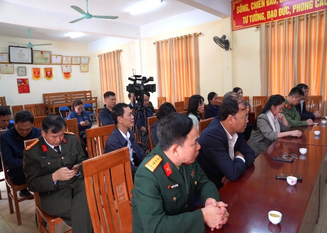 Tiếp đoàn có đồng chí Dương Tuấn Kiệt – Bí thư Đảng ủy, Chủ tịch HĐND xã, đồng chí Nguyễn Tất Thắng – Chủ tịch Uỷ ban Nhân dân xã tham dự; cùng đông đủ các đồng chí chỉ huy, tổ trưởng các tổ của Công an xã và toàn thể 26 CBCS được tăng cường từ các phòng nghiệp vụ.