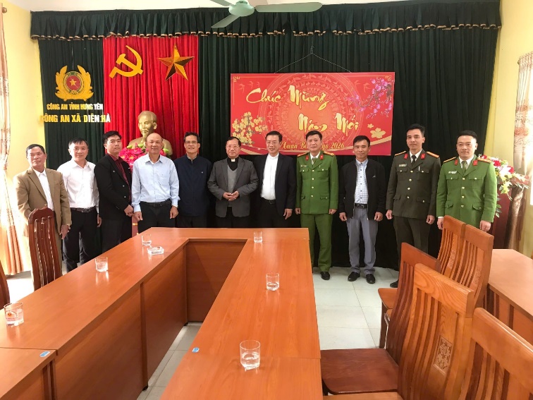 Đoàn Linh mục và Hội đồng mục vụ các giáo xứ trên địa bàn đến thăm và chúc Tết Công an xã Diên Hà