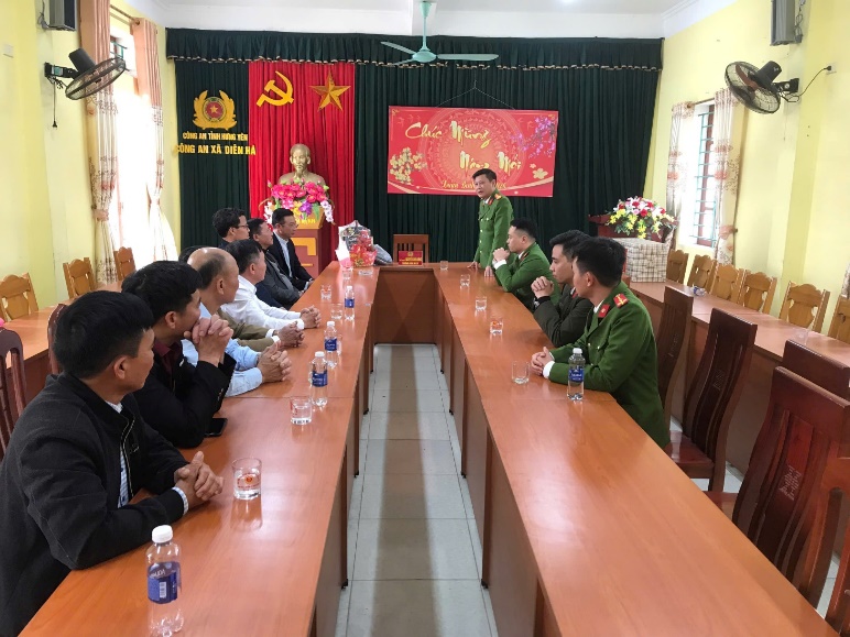 Thay mặt chỉ huy Công an xã, Trung tá Nguyễn Chí Giang – Trưởng Công an xã gửi lời cảm ơn đến các vị linh mục và Hội đồng mục vụ các giáo xứ đã quan tâm, đến thăm và chúc tết Công an xã. Đồng chí Trưởng Công an xã ghi nhận sự đóng góp của các vị chức sắc, tín đồ Công giáo trong phong trào toàn dân bảo vệ an ninh Tổ quốc, tham gia các mô hình tự quản về an ninh, trật tự, xây dựng giáo xứ, giáo họ bình yên, đoàn kết. Mong muốn các chức sắc, chức việc tiếp tục phối hợp lực lượng Công an trong công tác bảo đảm an ninh, trật tự; vận động tín đồ trong chấp hành nghiêm các quy định của pháp luật, nhất là các quy định liên quan trật tự, an toàn giao thông; vũ khí, vật liệu nổ, công cụ hỗ trợ và pháo; vệ sinh an toàn thực phẩm trong dịp Tết Nguyên đán.