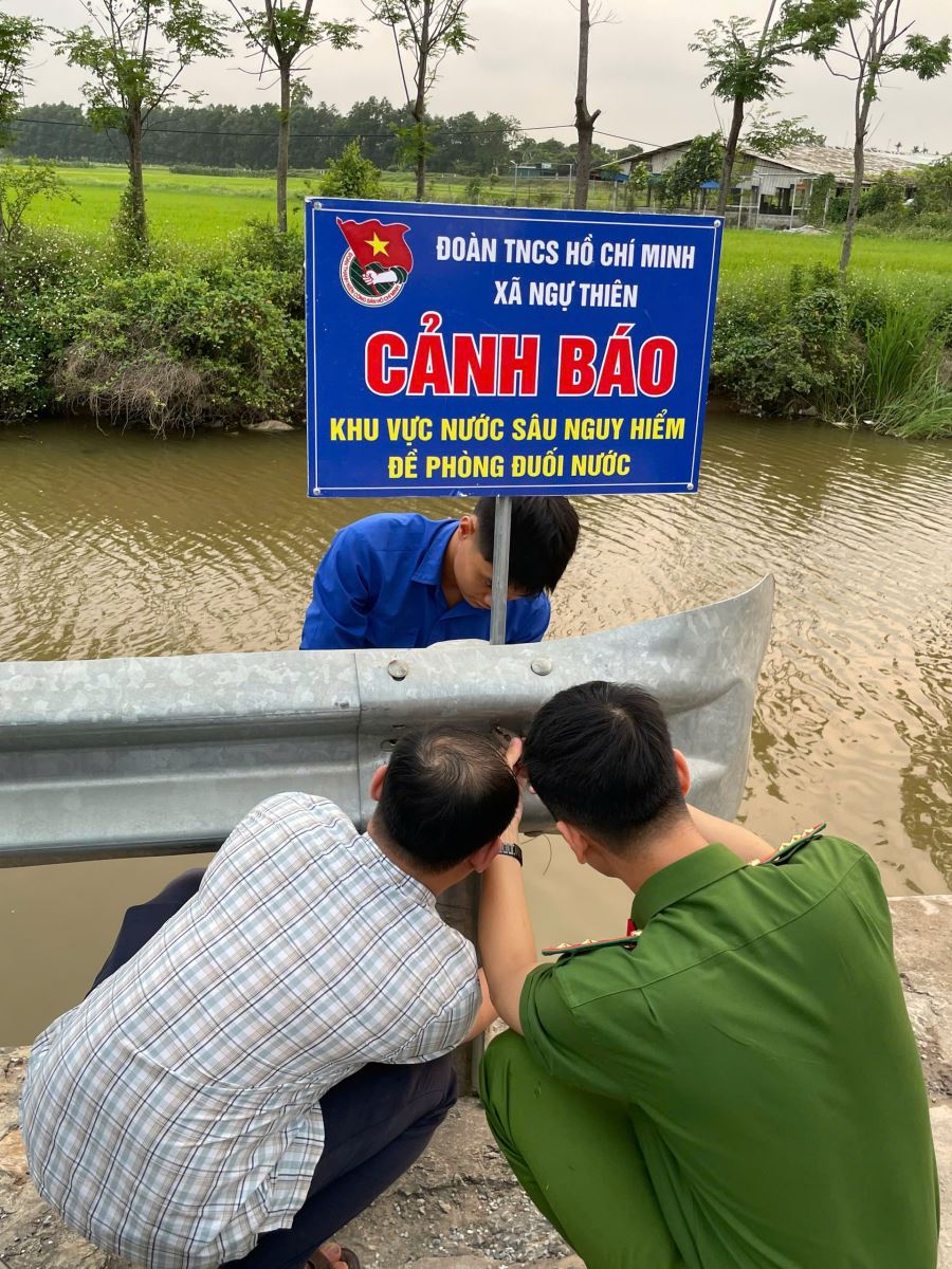 Trước tình hình đó, chiều ngày 16/04/2026; Đoàn thanh niên Công an xã Ngự Thiên phối hợp cùng Đoàn Thanh niên xã đã tiến hành khảo sát, cắm biển cảnh báo nguy hiểm tại những khu vực nước sâu, nơi các em học sinh thường xuyên lui tới tắm, vui chơi trên địa bàn xã. Đây là hoạt động thể hiện trách nhiệm, sự chủ động của lực lượng Công an xã và tổ chức Đoàn nhằm bảo vệ an toàn tính mạng cho Nhân dân, nhất là trẻ em trong dịp hè.