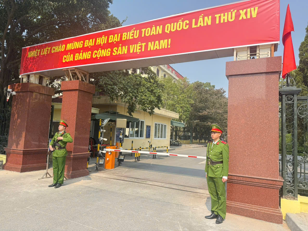 Cán bộ, chiến sỹ thực hiện công tác canh gác, kiểm soát người ra vào trụ sở