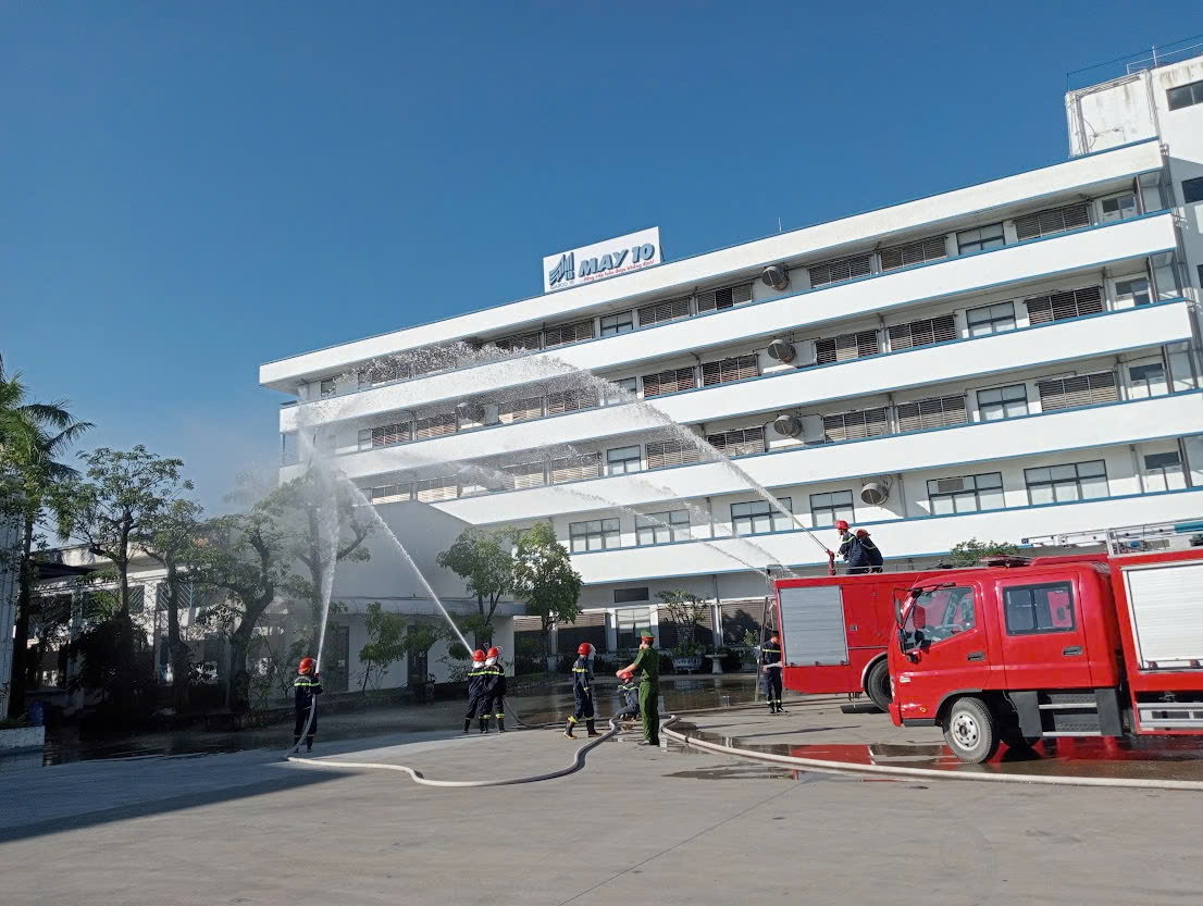 Chiều ngày 17/10/2025 Đội chữa cháy và cứu nạn, cứu hộ khu vực Hưng Hà thuộc Phòng Cảnh sát PCCC&CNCH Công an tỉnh Hưng Yên tổ chức thực tập phương án chữa cháy và cứu nạn cứu hộ tại Xí nghiệp May Hưng Hà thuộc Tổng Công ty may 10.