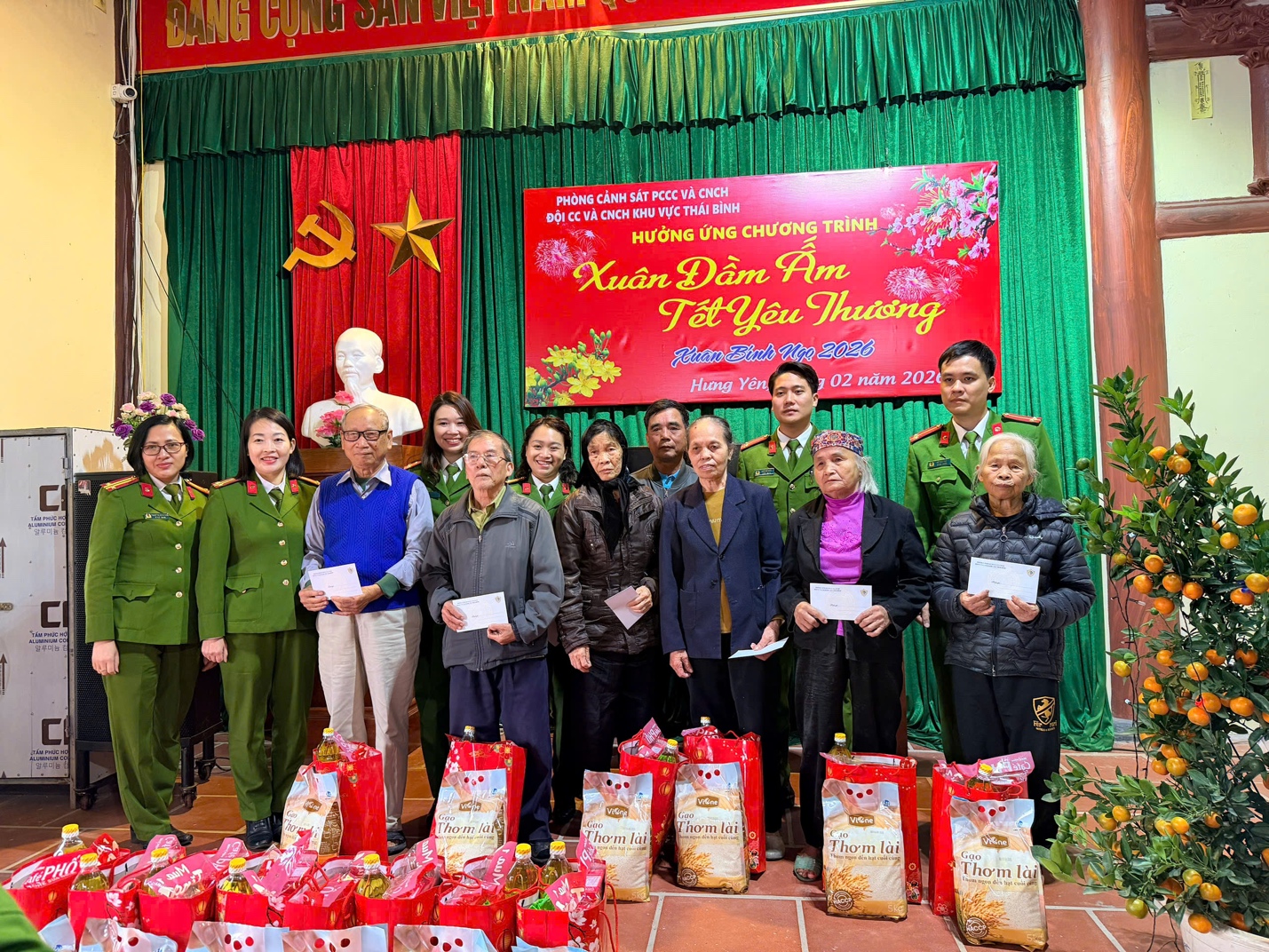 Sáng ngày 11/02/2026, Đội Chữa cháy và CNCH khu vực Thái bình phối hợp cùng Đoàn Thanh niên, Hội phụ nữ Phòng Cảnh sát PCCC và CNCH- Công an tỉnh Hưng Yên tổ chức tổ chức chương trình “Xuân ấm áp – Tết yêu thương” trao quà Tết Nguyên đán Bính Ngọ năm 2026 cho các hộ gia đình có hoàn cảnh khó khăn trên địa bàn thôn Hương Xá, xã Tiên La, tỉnh Hưng Yên.