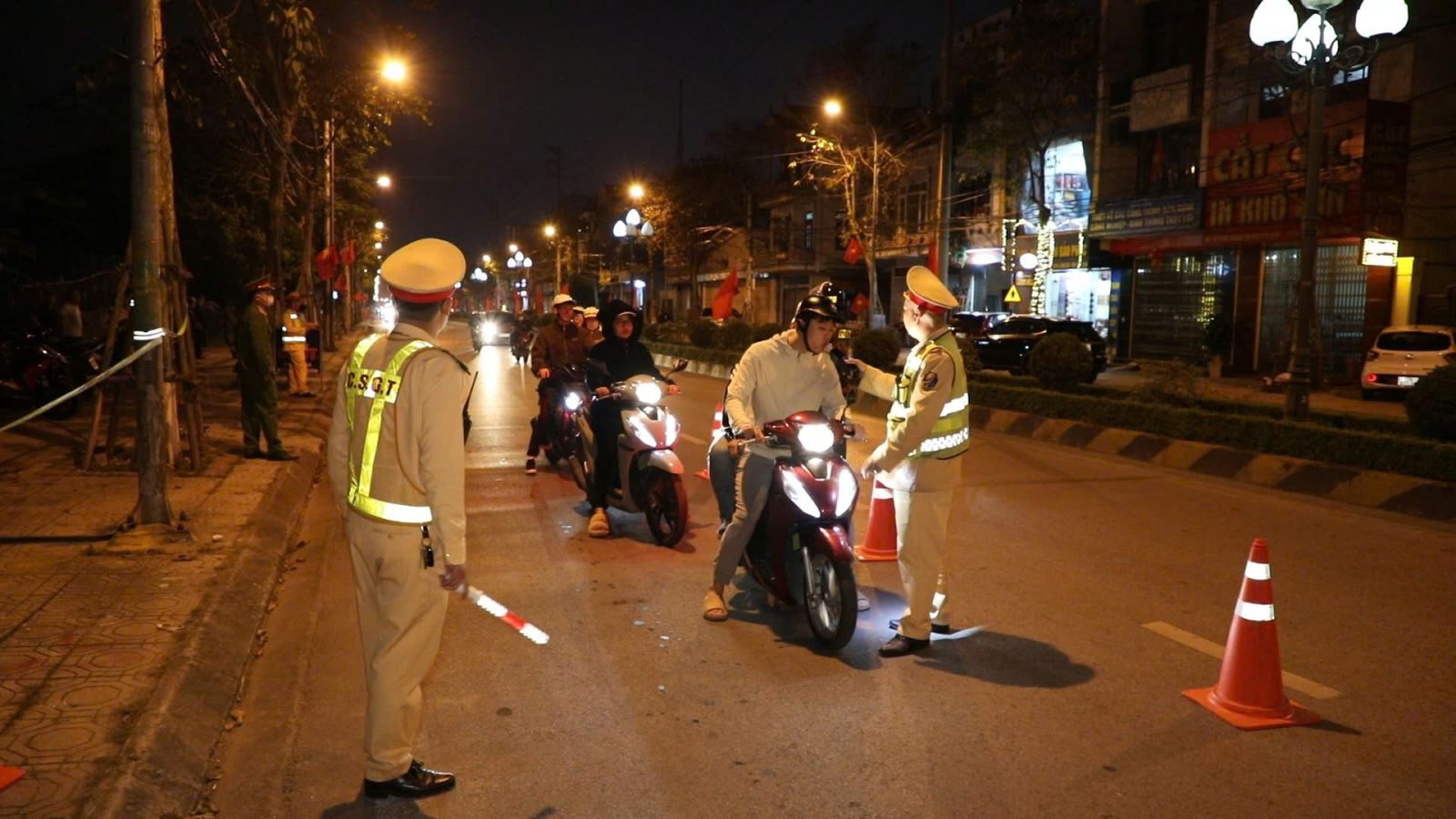 Đáng chú ý, trong quá trình tuần tra kiểm soát, các tổ công tác của Đội CSGT đường bộ số 3 đã kịp thời phát hiện và ngăn chặn nhiều trường hợp thanh thiếu niên điều khiển phương tiện với tốc độ cao, tiềm ẩn nguy cơ mất an toàn giao thông. Cụ thể, vào khoảng 20 giờ 35 phút ngày 7/3/2026, trên tuyến đường Võ Nguyên Giáp thuộc phường Trà Lý, tổ công tác phát hiện Phạm Đức Mạnh (SN 2008, trú tại thôn Tô Xuyên, xã Phụ Dực) điều khiển xe mô tô nhãn hiệu Honda Air Blade BKS 89AA-885.57 chở theo Vũ Thế Hùng (SN 2009) và Lê Nguyên Phát (SN 2008) cùng trú tại xã Phụ Dực. Quá trình di chuyển, các đối tượng điều khiển phương tiện với tốc độ cao, có biểu hiện lạng lách, đánh võng và không chấp hành hiệu lệnh dừng xe của lực lượng Cảnh sát giao thông. Khi gặp rào chắn của tổ công tác, phương tiện đã đâm vào rào chắn khiến cả ba người trên xe bị ngã ra đường. Ngay sau đó, tổ công tác đã nhanh chóng tiếp cận hiện trường, kịp thời khống chế các đối tượng, bảo đảm an toàn cho những người liên quan và tiến hành lập hồ sơ xử lý theo quy định của pháp luật.