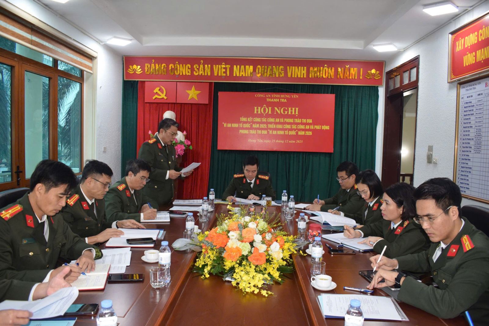 Sáng ngày 25/12/2025, Thanh tra Công an tỉnh tổ chức Hội nghị triển khai nhiệm vụ công tác thanh tra và phát động phong trào thi đua “Vì An ninh Tổ quốc” năm 2026. Dự chỉ đạo Hội nghị có đồng chí Đại tá Nguyễn Thành Sơn - Phó Bí thư Đảng ủy, Phó Giám đốc Công an tỉnh. Đồng chí Thượng tá Lê Mạnh Hùng - Chánh thanh tra Công an tỉnh chủ trì hội nghị. Cùng dự có đại diện lãnh đạo một số phòng Tham mưu, phòng Tổ chức cán bộ, phòng Công tác chính trị và toàn thể lãnh đạo, chỉ huy, cán bộ chiến sĩ Thanh tra Công an tỉnh.