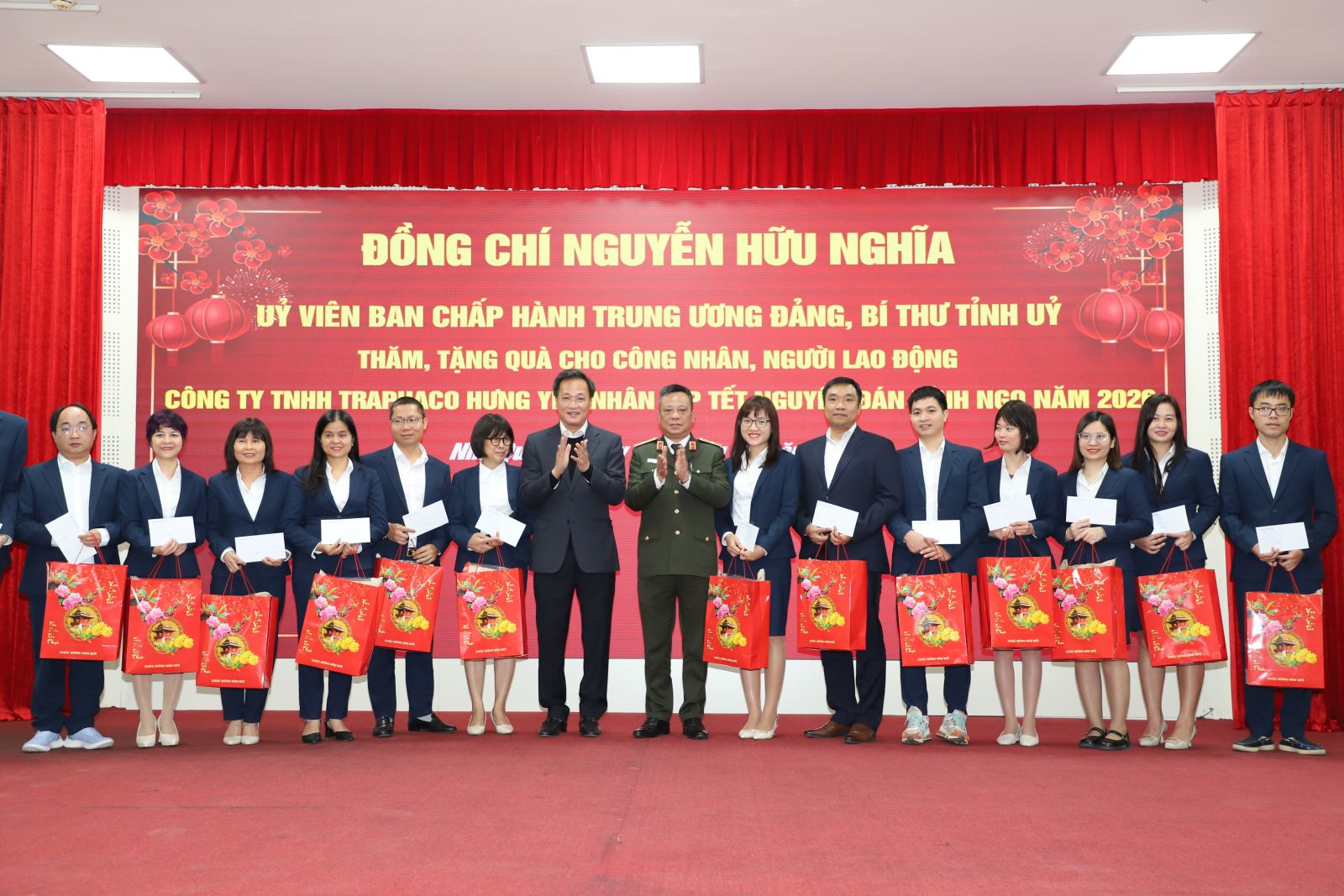 Tại Công ty TNHH Traphaco Hưng Yên, đồng chí Bí thư Tỉnh ủy vui mừng, phấn khởi trước sự phát triển của công ty, đơn vị đã xây dựng thương hiệu trên thị trường dược phẩm trong và ngoài nước, đóng góp vào sự phát triển chung của tỉnh, chăm lo đời sống công nhân, người lao động. Đồng chí Bí thư Tỉnh ủy chúc công ty bắt nhịp với cuộc cách mạng 4.0, xu hướng chuyển đổi số, ứng dụng công nghệ sinh học trong nghiên cứu, sản xuất nhiều dòng sản phẩm mới, mở rộng thị trường, đồng thời quan tâm hơn nữa tới đời sống cán bộ, công nhân, người lao động của công ty. Trong không khí ấm áp chuẩn bị đón Tết cổ truyền của dân tộc, đồng chí Bí thư Tỉnh ủy Nguyễn Hữu Nghĩa chúc toàn thể cán bộ, công nhân, người lao động của công ty có nhiều sức khỏe, năm mới an khang, hạnh phúc. Trong dịp này, đồng chí Bí thư Tỉnh ủy đã trao quà Tết tới 30 công nhân lao động tiêu biểu của Công ty TNHH Traphaco Hưng Yên.