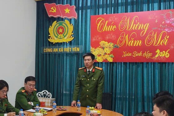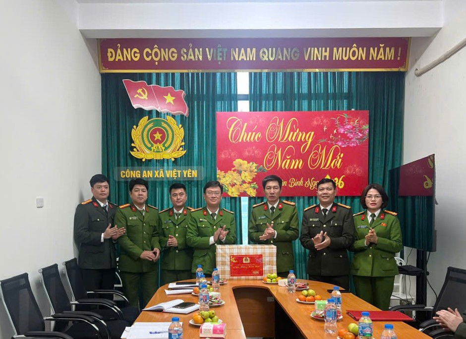 Nhân dịp chuẩn bị đón Xuân mới Bính Ngọ 2026, đồng chí Phó Giám đốc Công an tỉnh đã trao tặng quà, gửi lời chúc mừng năm mới sức khỏe, hạnh phúc và thành công tới toàn thể cán bộ, chiến sĩ Công an xã Việt Yên. Đồng chí mong muốn mỗi cán bộ, chiến sĩ tiếp tục phát huy tinh thần trách nhiệm, khắc phục khó khăn, hoàn thành xuất sắc nhiệm vụ được giao, góp phần giữ vững ổn định an ninh chính trị, trật tự an toàn xã hội trên địa bàn, để Nhân dân vui Xuân, đón Tết an toàn, bình yên.